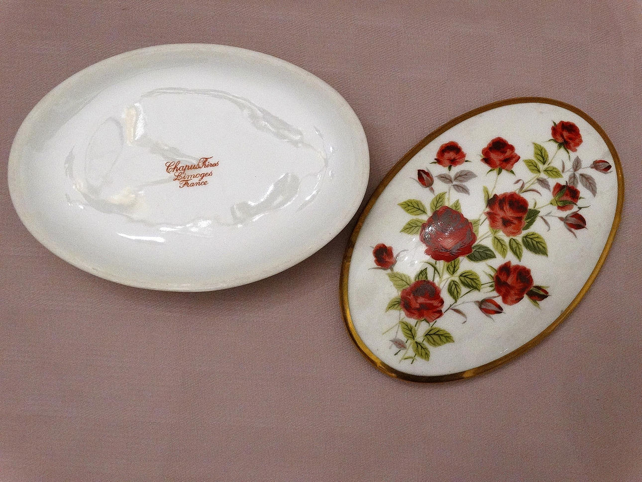 LIMOGES-DECKELDOSE, MIT ROSENDEKOR, HANDBEMALT, VINTAGE.