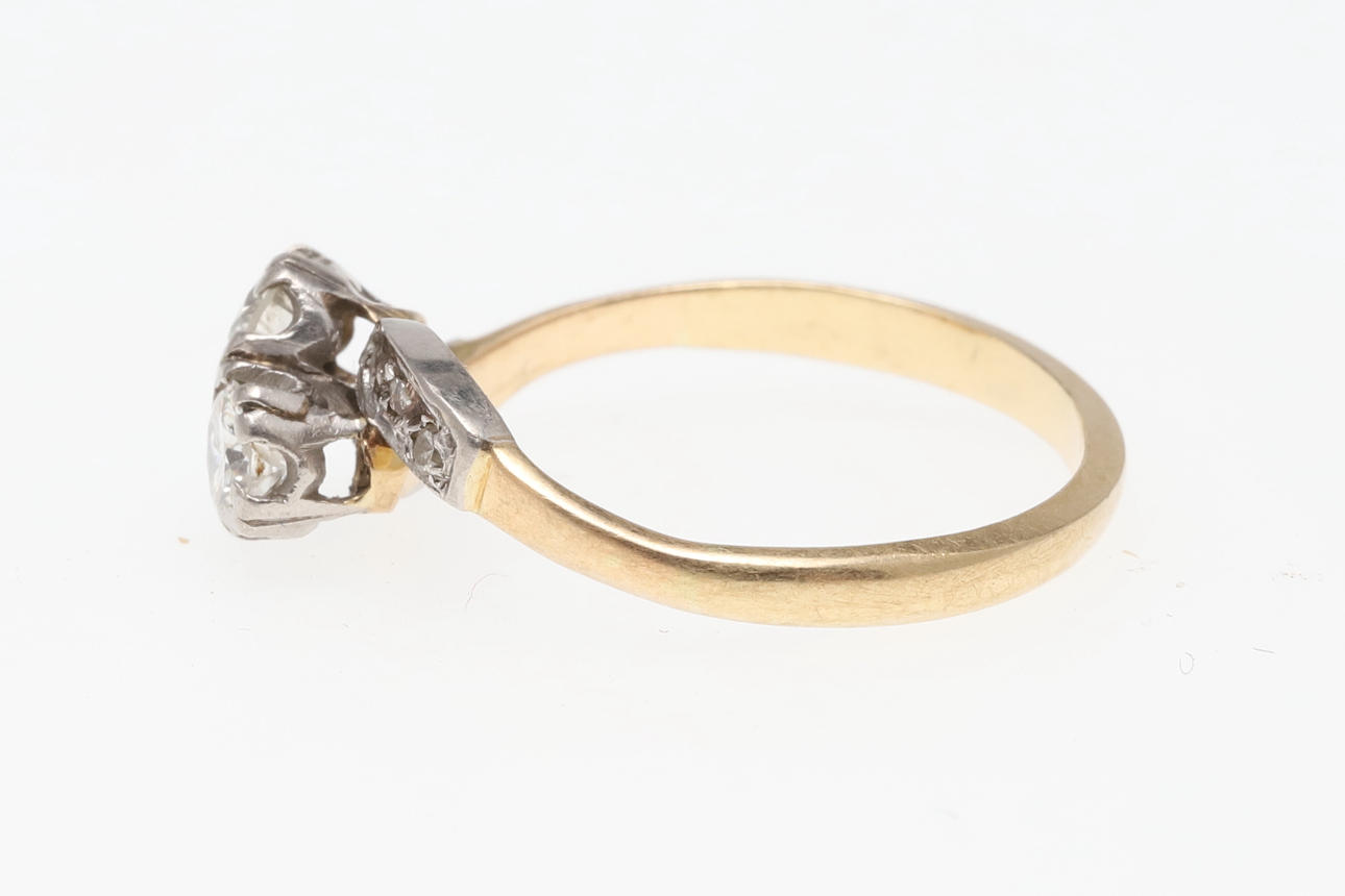 besetzt mit zwei Diamanten im Rundschliff, mit weiteren Diamanten an jeder Schulter, aus Gelbgold, 2,2 Gramm. Größe L.