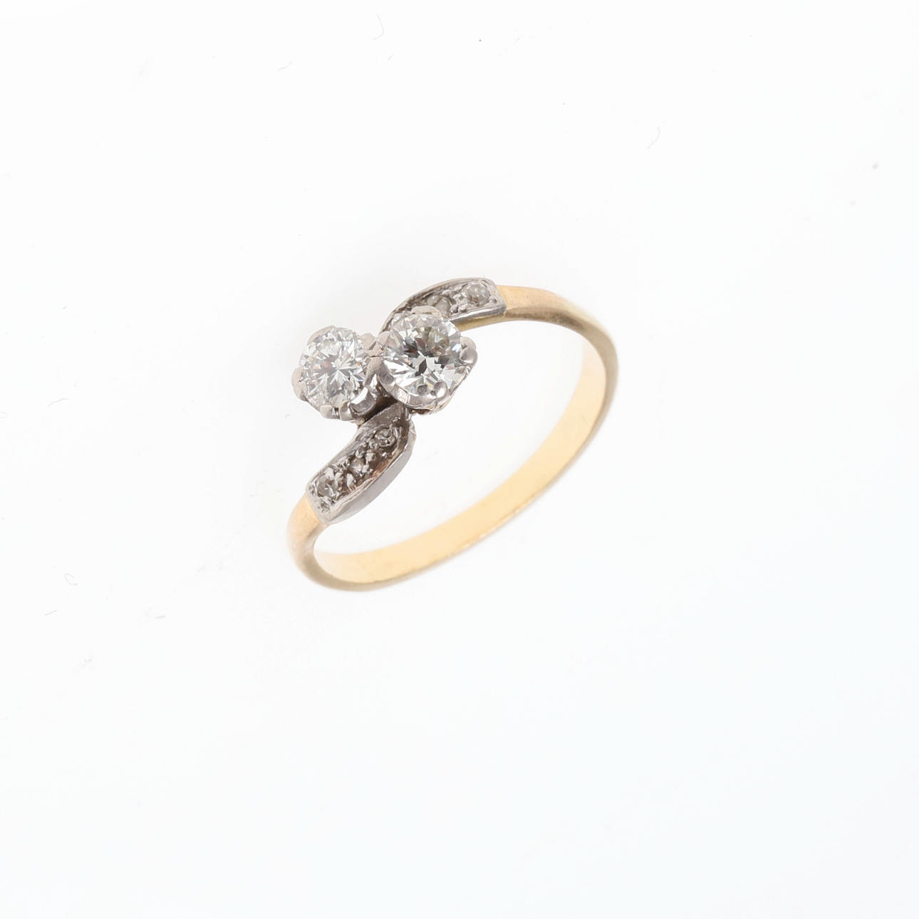 EIN DIAMANT-CROSS-OVER-RING MIT ZWEI STEINEN.
