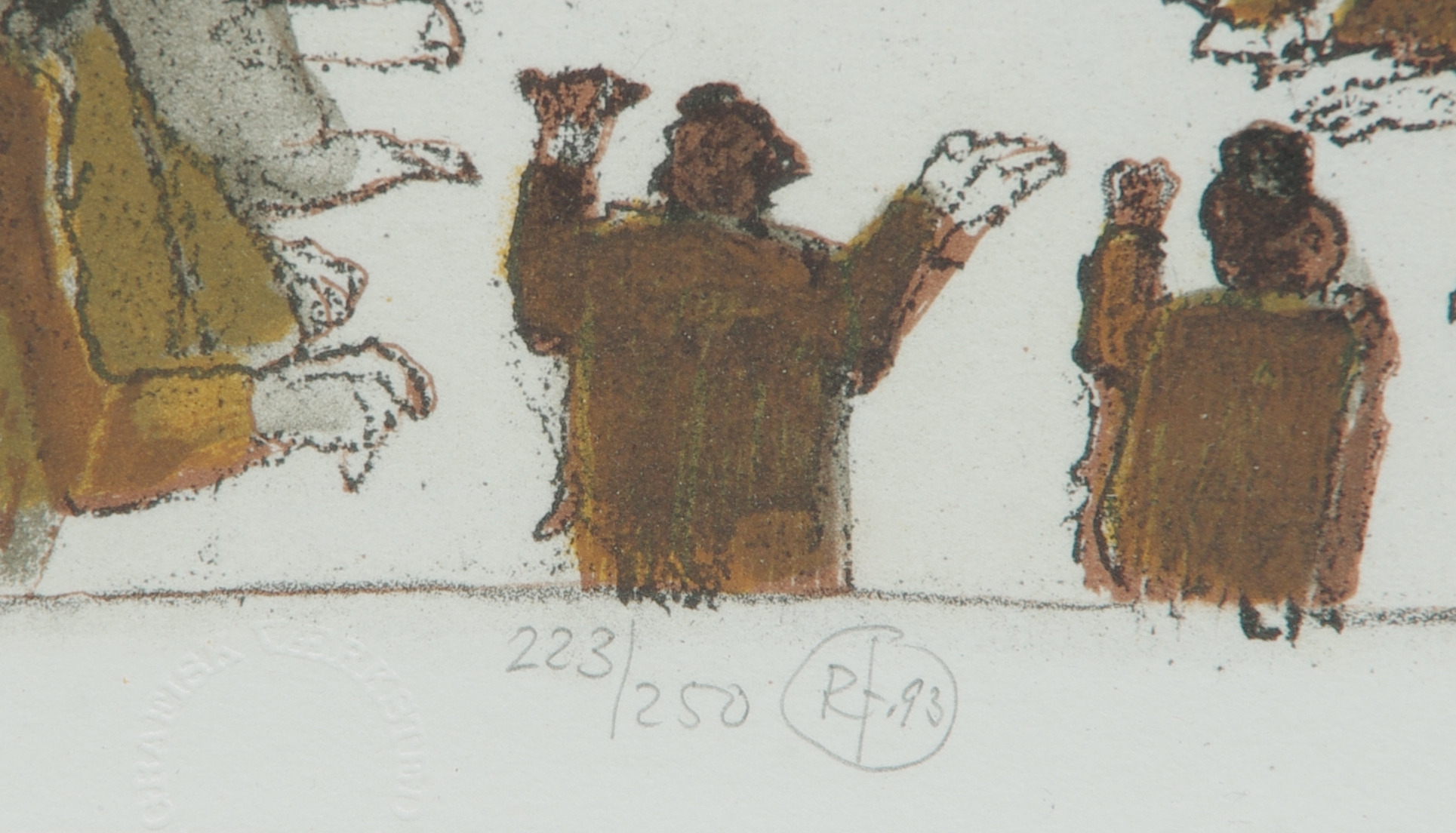 329340. ROY FRIBERG. Esstisch, Farblithografie, monogrammiert RF -93.