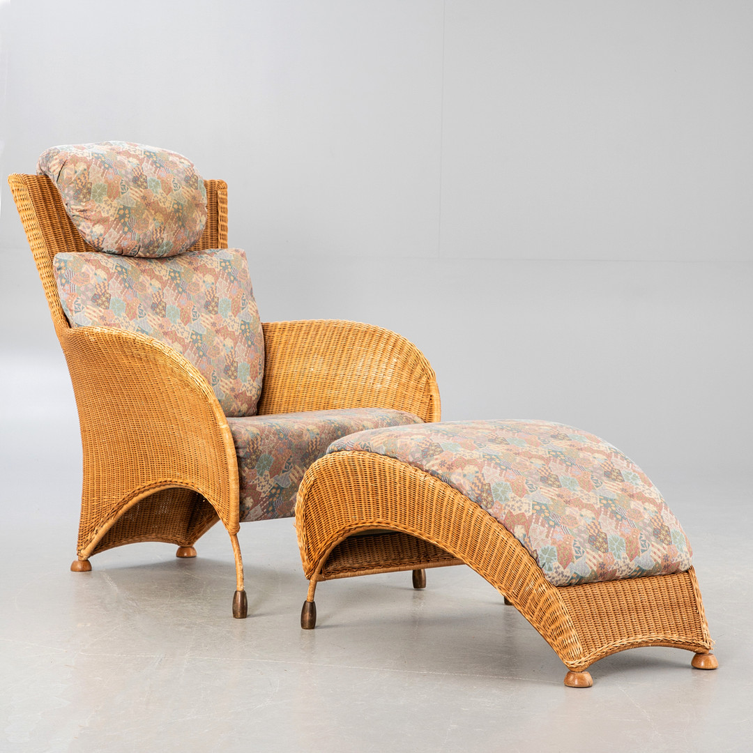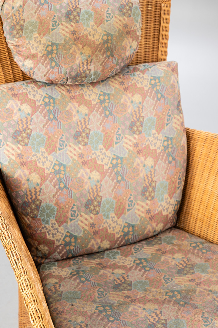 3293582. Rolf Benz, Rattan Sessel + Ottomane.