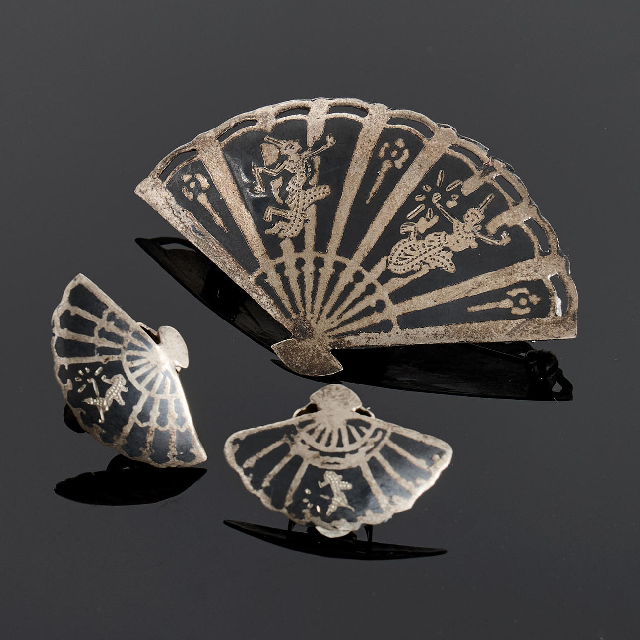 1 Paar Ohrringe, 1 Armband, 2 Charms, 2 Ringe, 2 Broschen, 1 Anhänger.