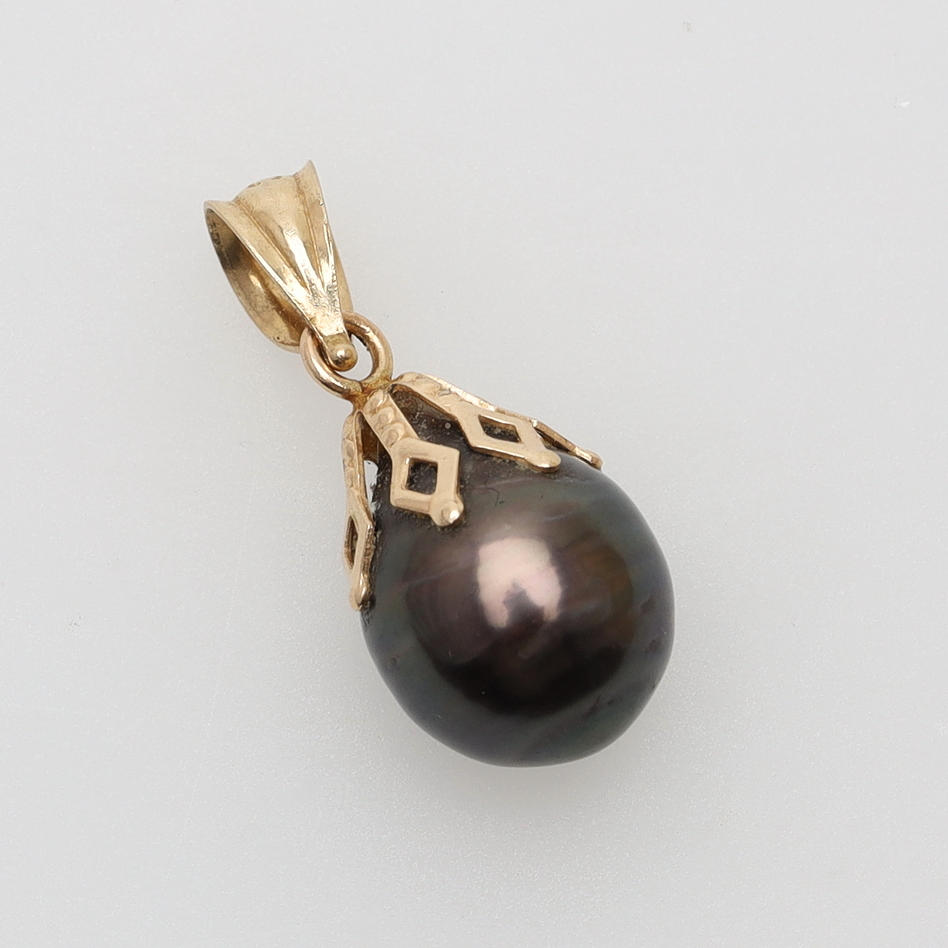 3295371. ANHÄNGER, 14-karätiges Gold, schwarze Perle.