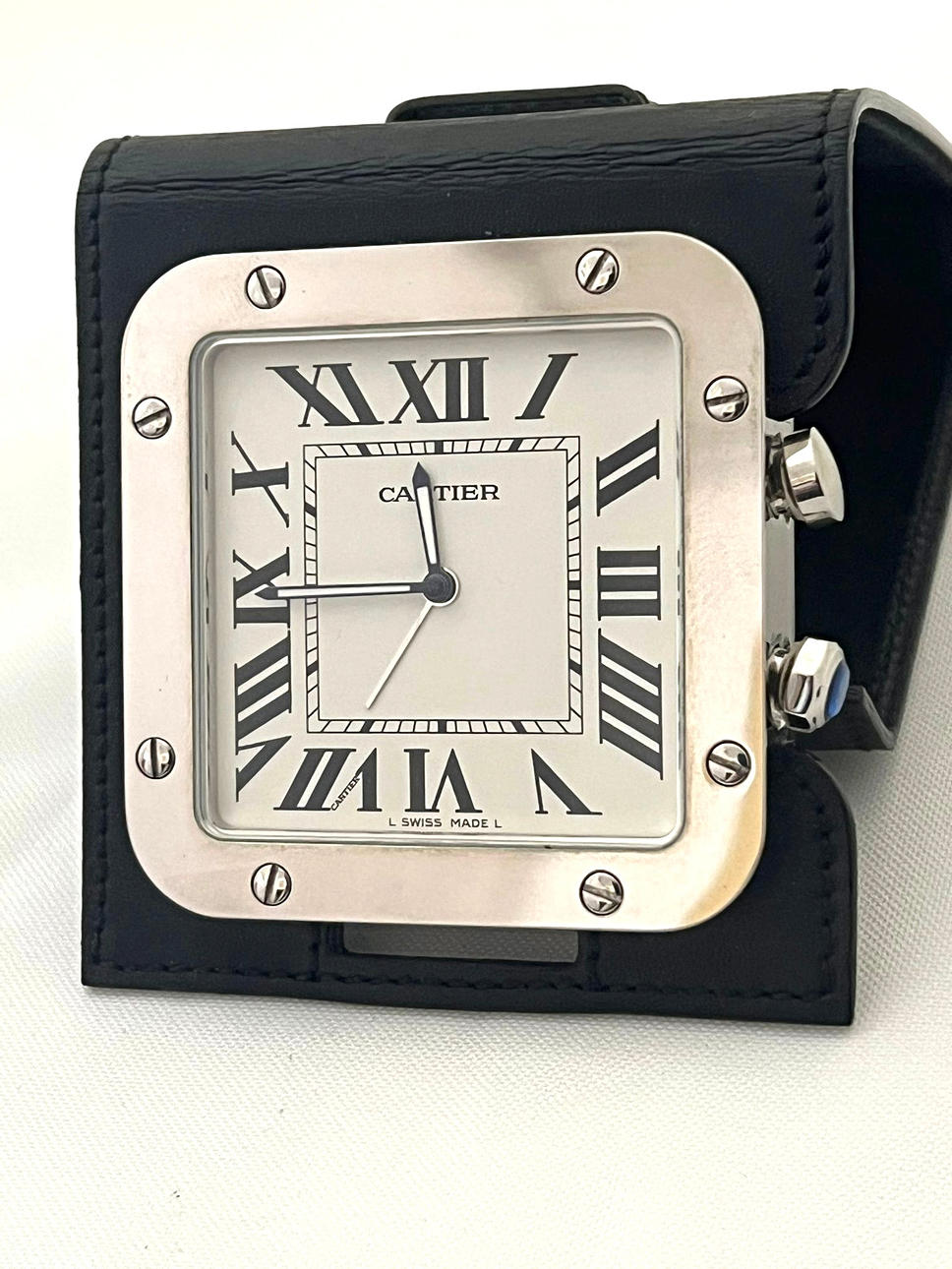 Cartier Reisewecker Modell im Santos-Galbe-Stil. Quarzuhrwerk