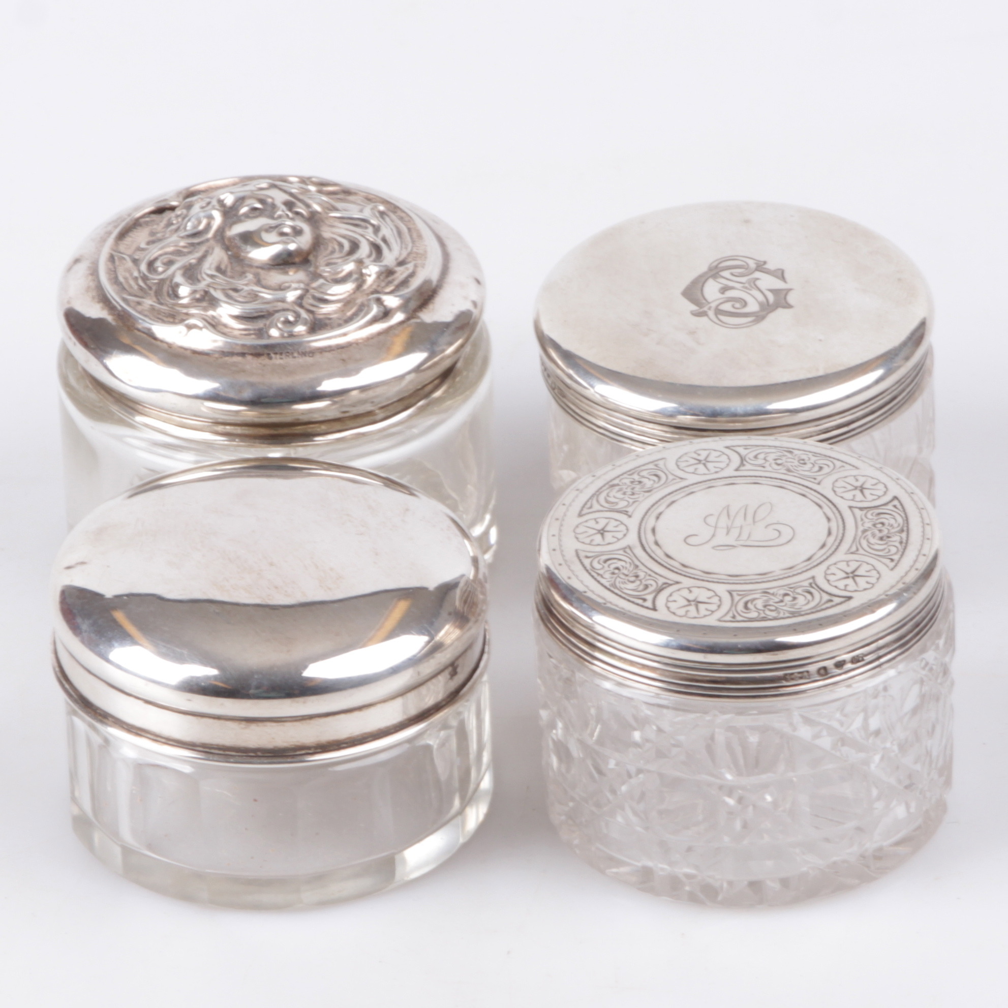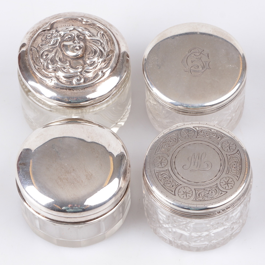 329879. GLÄSER, 4 Stk. Glas mit Silberdeckel, 20. Jahrhundert.