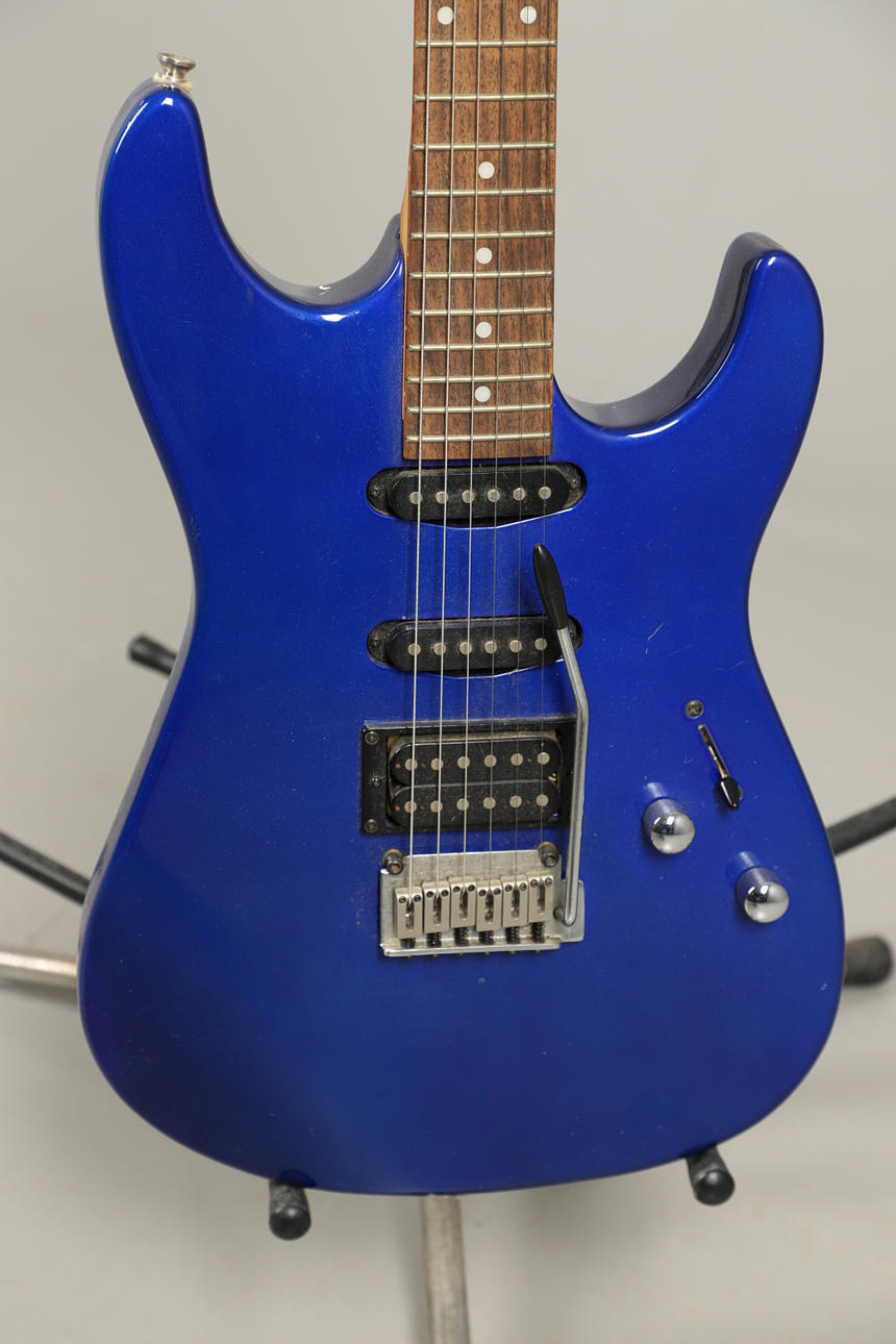 Eine Showmaster-E-Gitarre, nummeriert s/n IC 041023395. Mit blauem Körper. 100 cm.