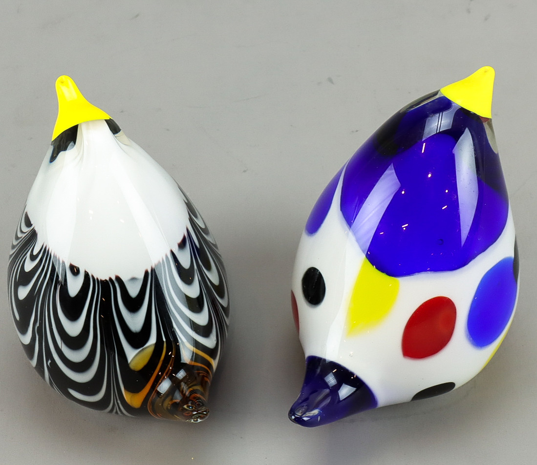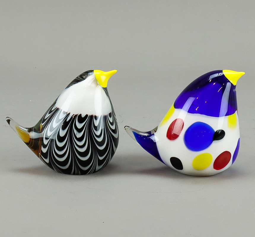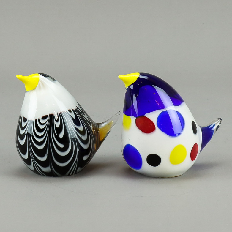 3300211. VÖGEL 2 Stück, Kunstglas.