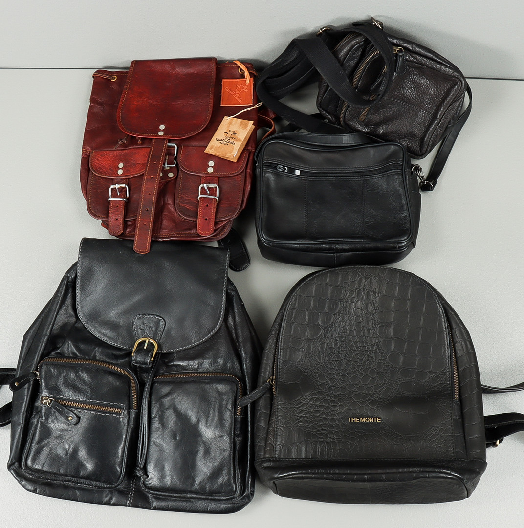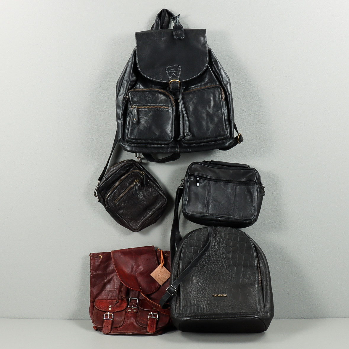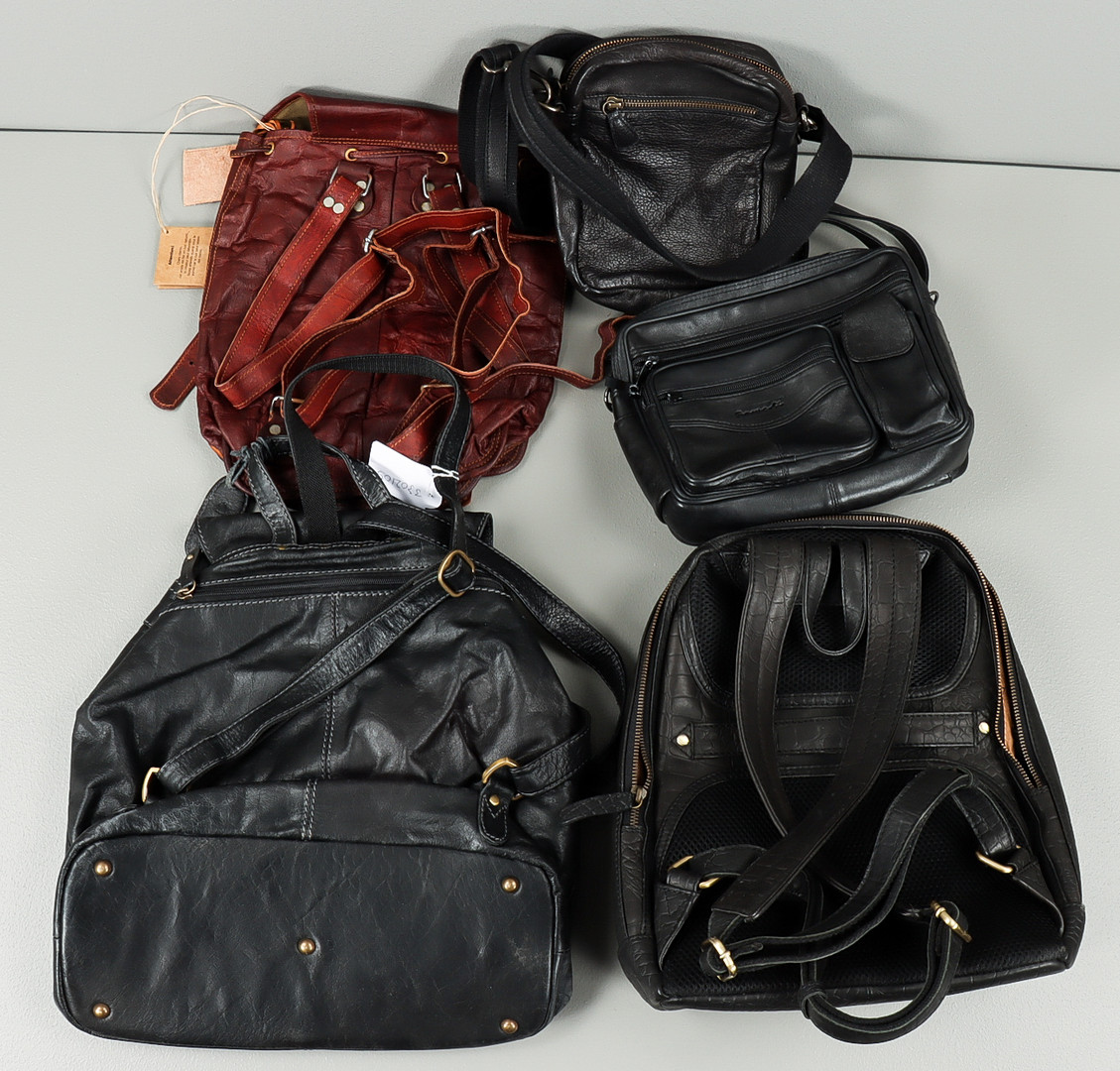 3302105. RUCKSÄCKE UND SCHULTERTASCHEN. 5 Stück, Leder.