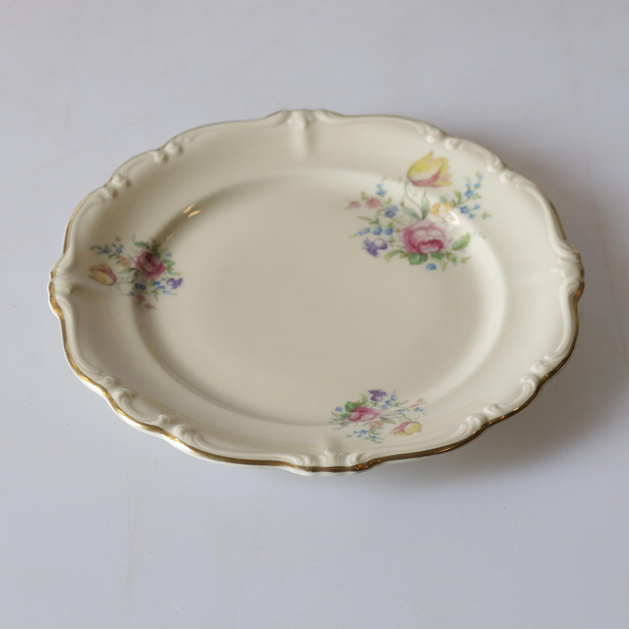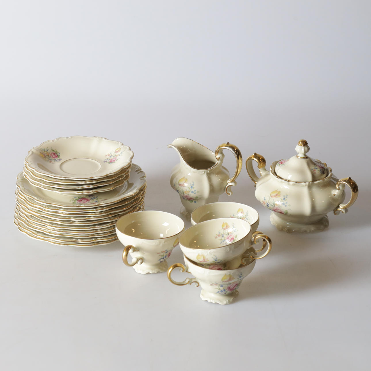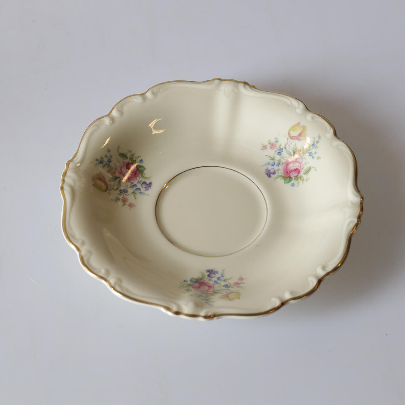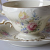 Mit goldenem Rand und Blumenmotiv.