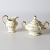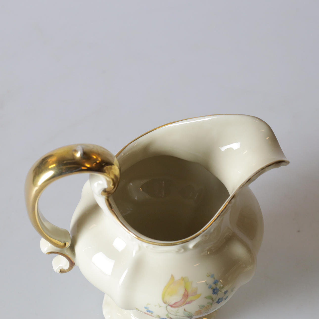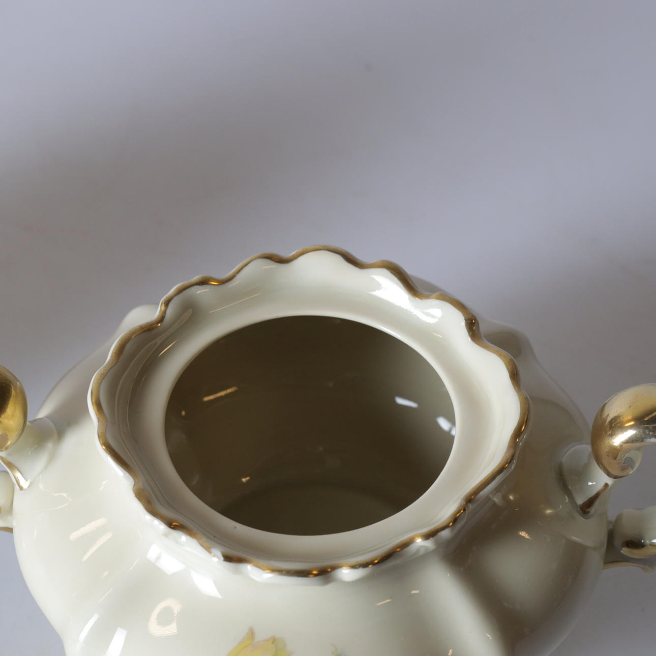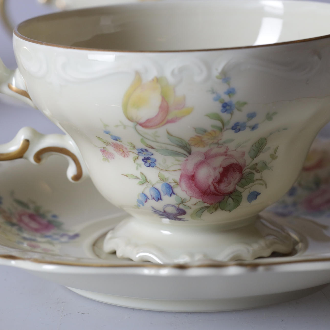 Mit goldenem Rand und Blumenmotiv.