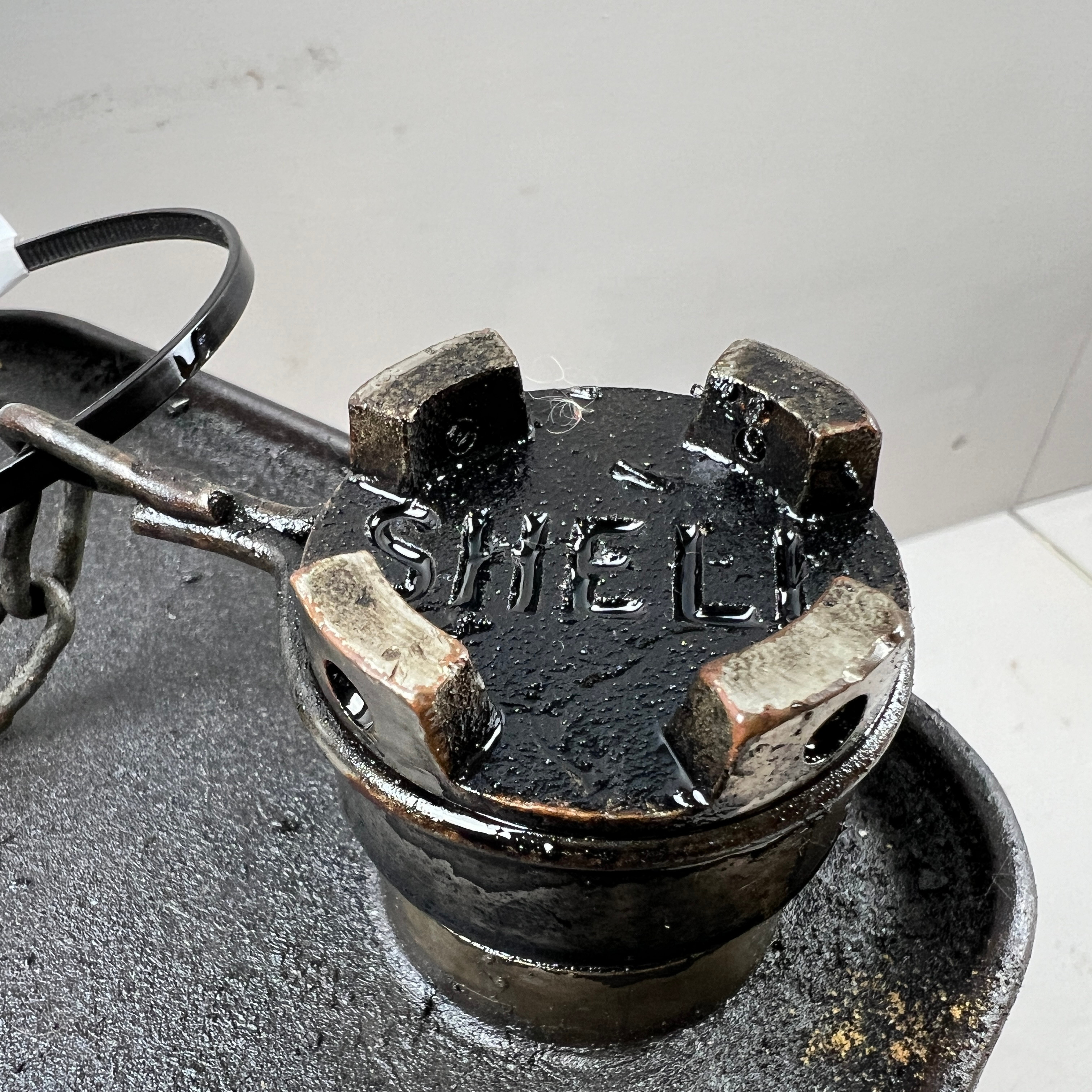 3303893. Eine „Benzinschale“, eine Blechdose, erste Hälfte des 20. Jahrhunderts.