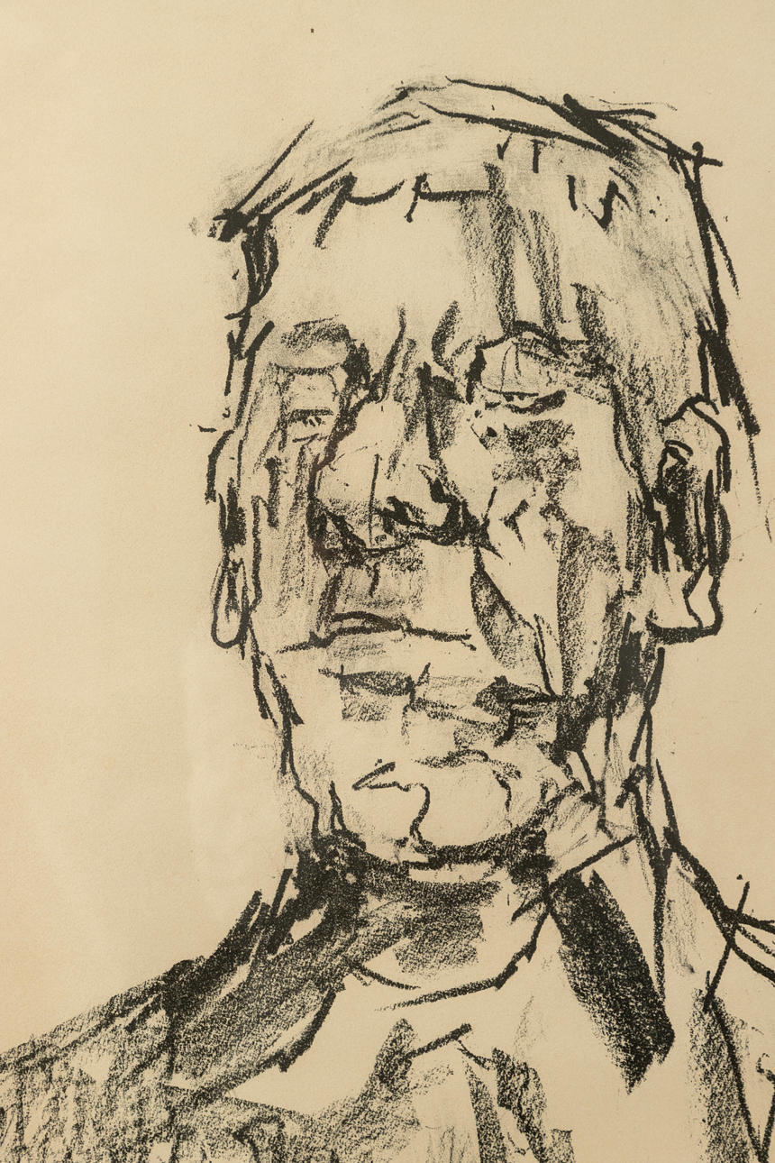 Oskar Kokoschka (1886-1980), Selbstbildnis, Lithographie, 1965, signiert, datiert und bezeichnet 'Litho, épreuve d'artiste", im Stein monogrammiert, ca. 105 x 77 cm, hinter Glas gerahmt, mit Rahmen ca. 111,5 x 82 cm.