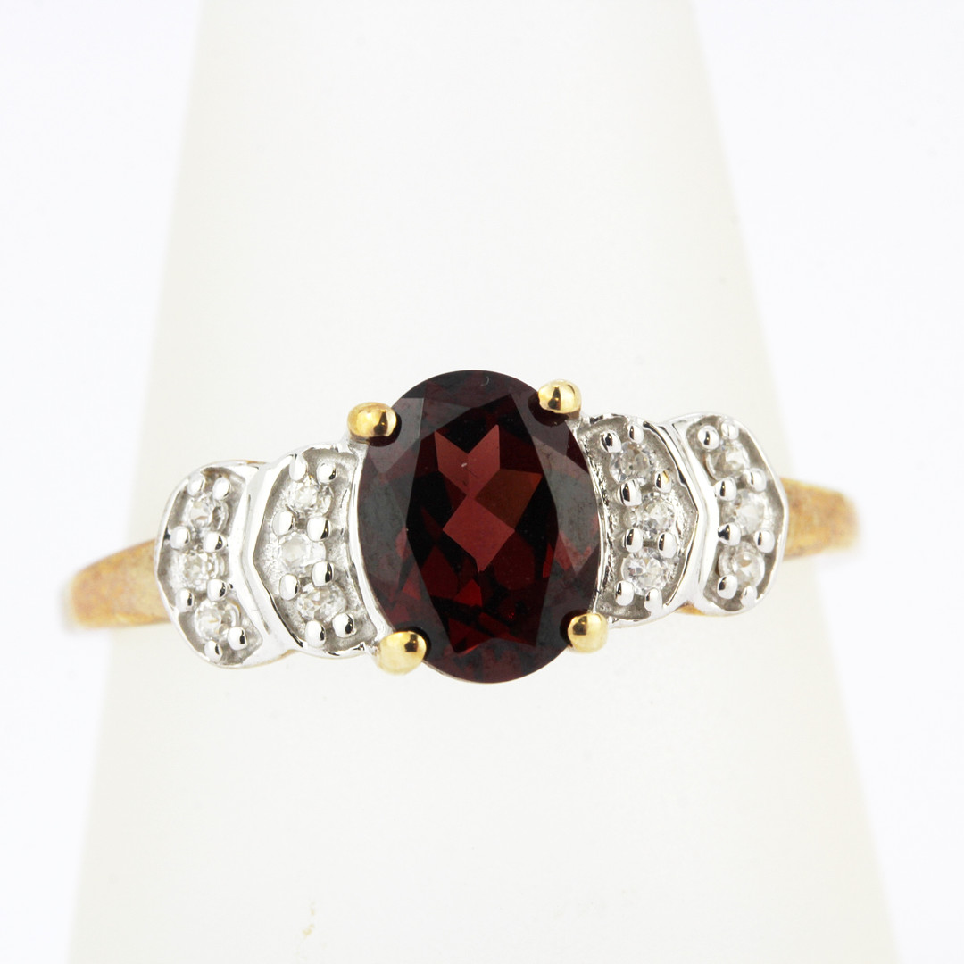 3305360. RING 9 KT, GRANAT UND WEISSER TOPAS.