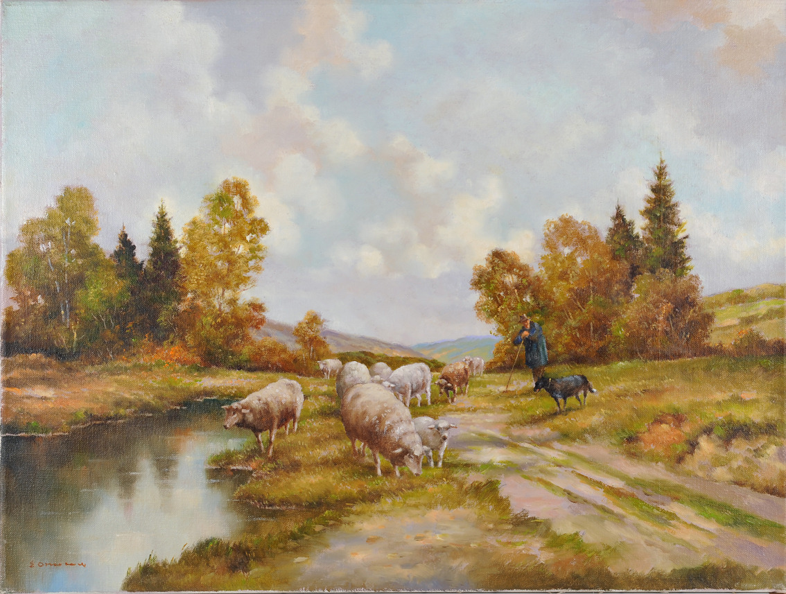 330592. EUGEN OTTERBACH. Schäfer rastet mit seiner Herde.