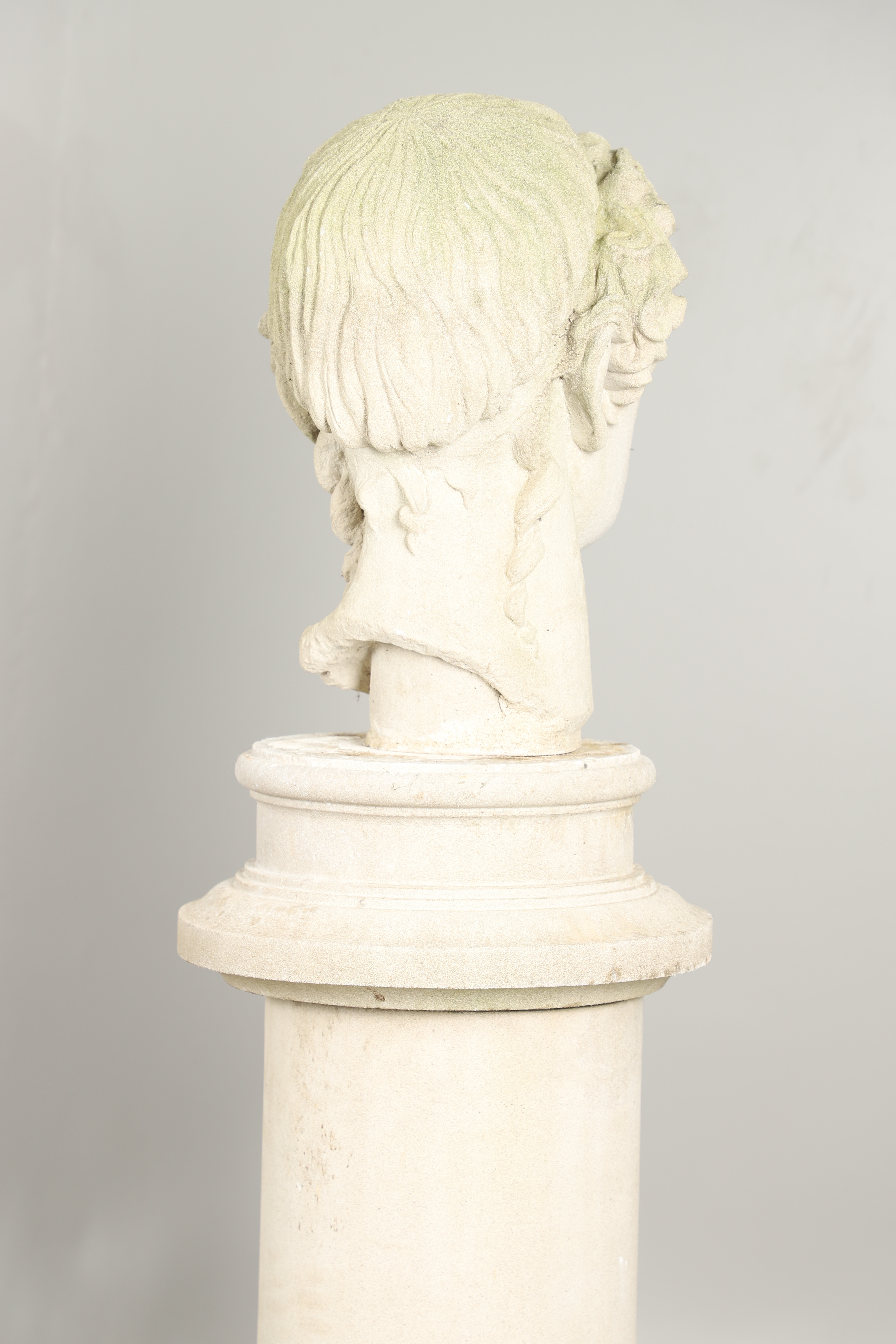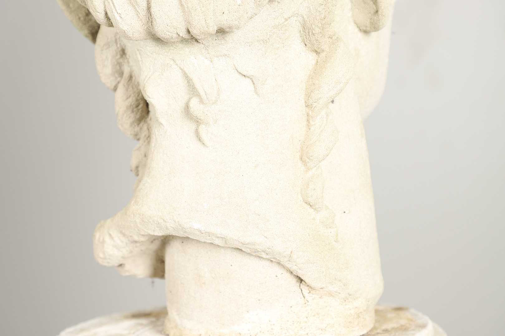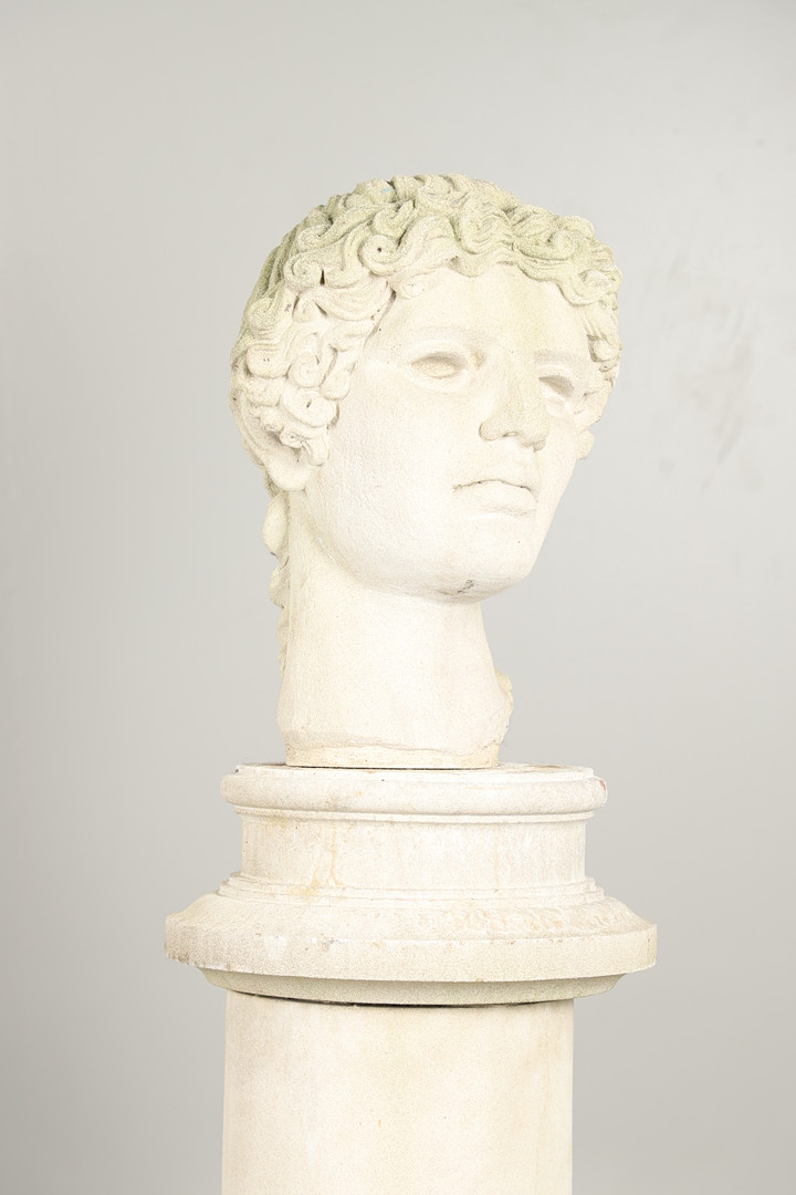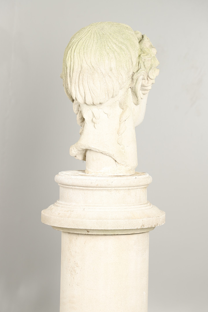 3306438. EINE GEGOSSENE BETONBÜSTE AUF EINEM SOCKEL.