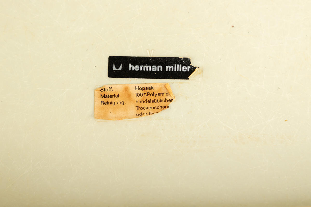 3306734. RAY & CHARLES EAMES. Vitra / Herman Miller. 'Contract Table' & 2 'DAX Chairs', Hopsak blau.