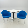 RAY & CHARLES EAMES. Vitra / Herman Miller. 'Contract Table' & 2 'DAX Chairs', Hopsak blau.