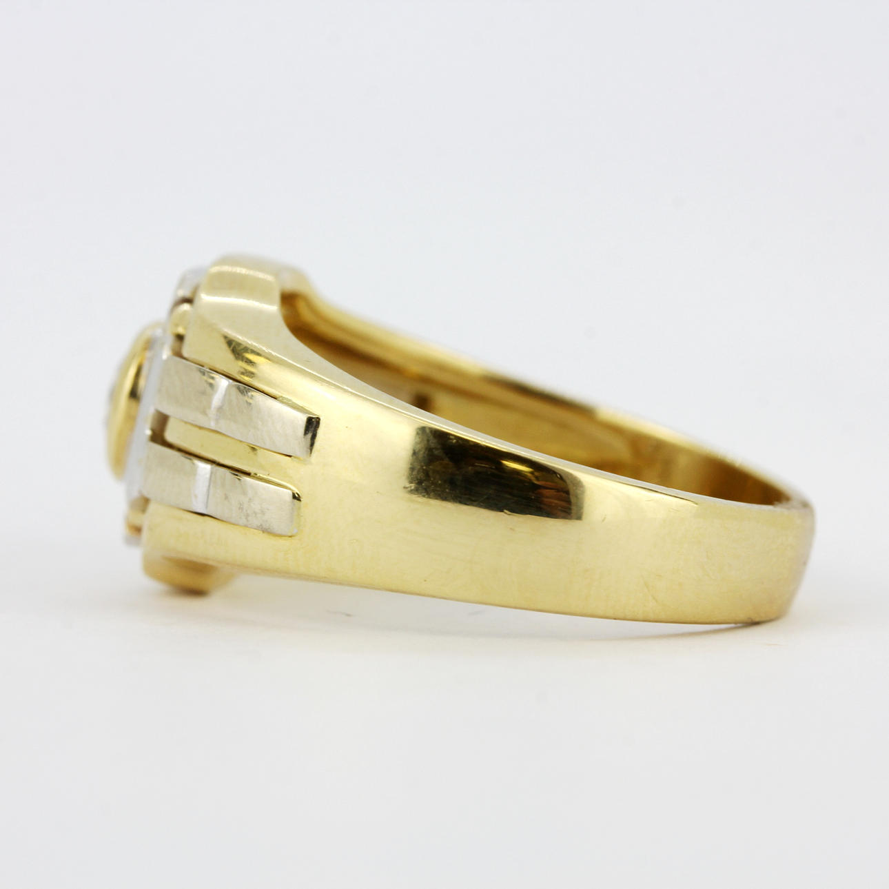 Ein Herrenring aus 18 Karat Gelbgold, besetzt mit einem Diamanten im Brillantschliff, Ringgröße S.