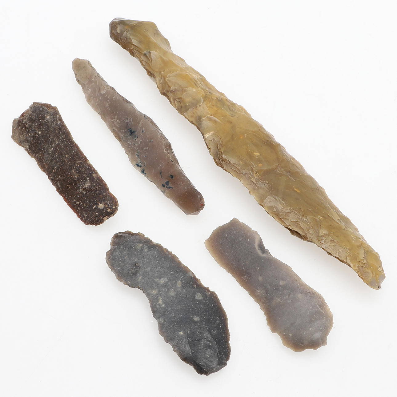 3308927. STEINZEITWERKZEUGE, 5 Stück, Feuerstein.