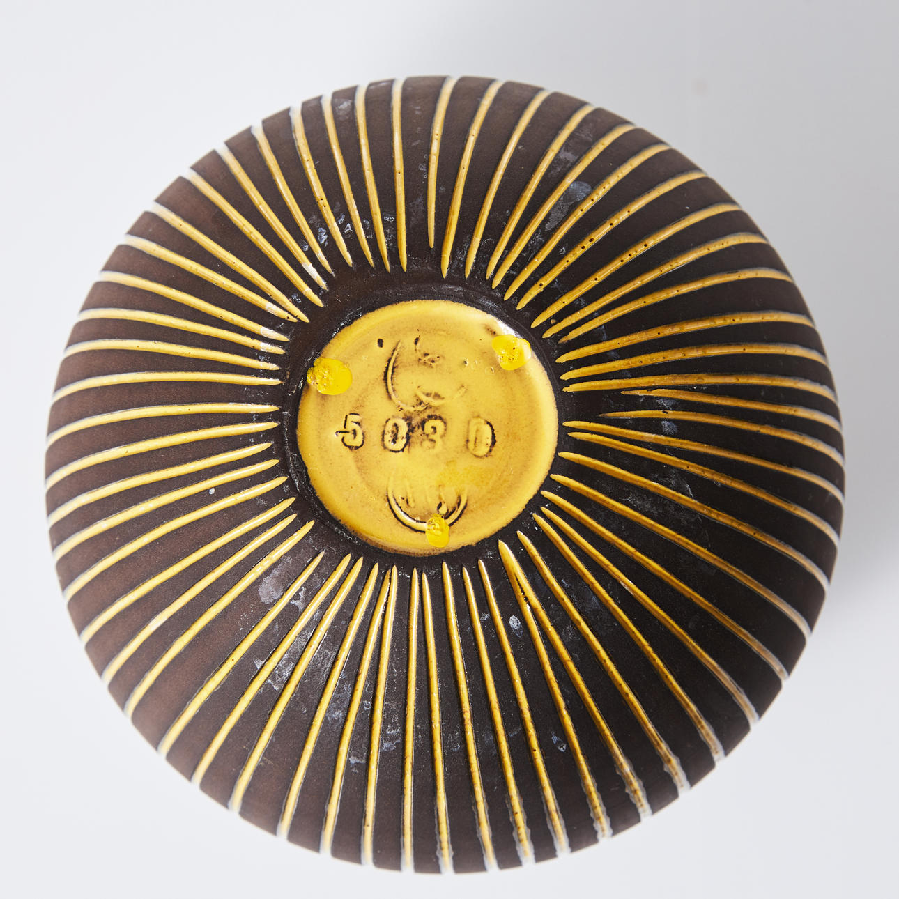 Teilweise glasiert mit gelben senkrechten Streifen. Signiert und nummeriert 5030.