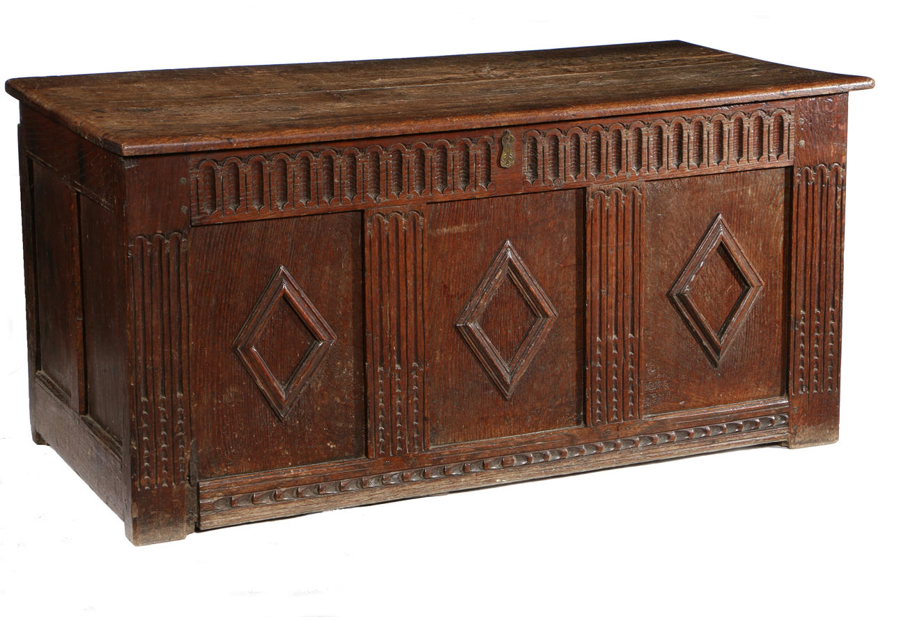 3309428. EINE GROSSE EICHENTRUHE AUS DEM 17. JAHRHUNDERT.
