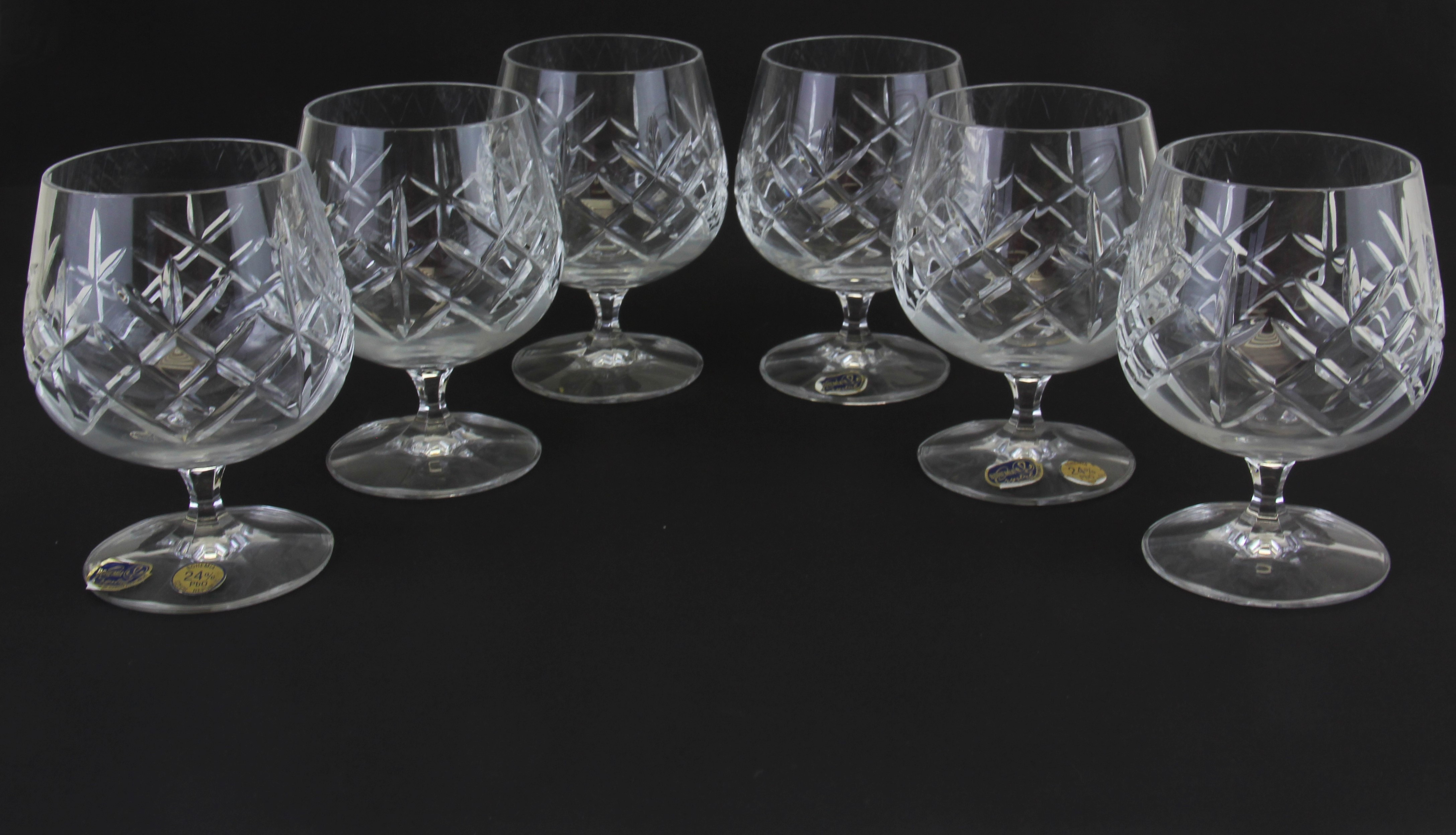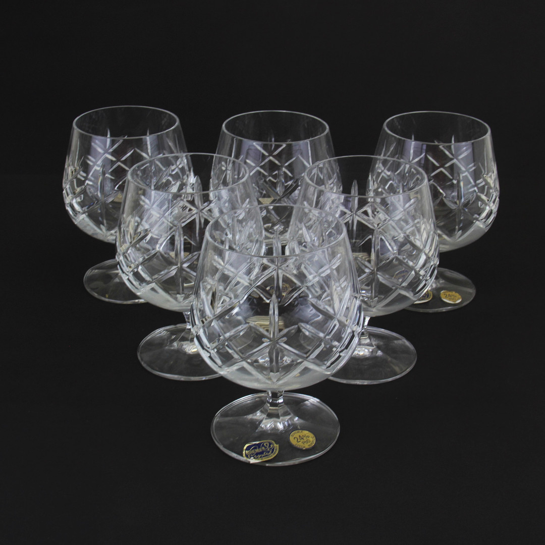3310323. SECHS WEINBRANDGLÄSER AUS BÖHMISCHEM KRISTALL.