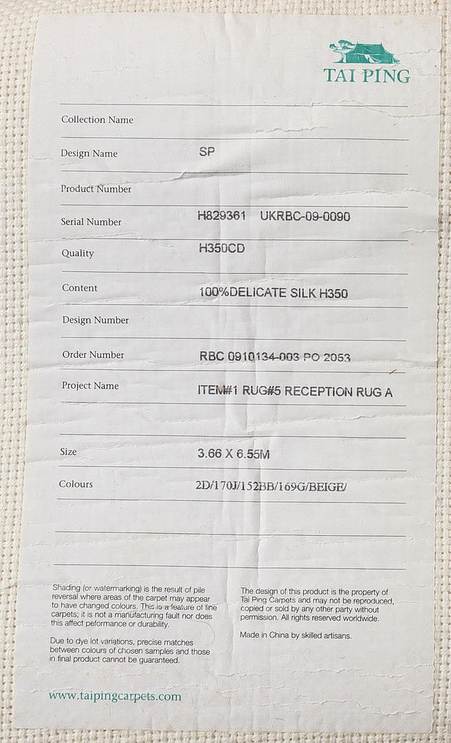 3311305. TAI PING. EIN ZEITGENÖSSISCHER SEIDETEPPICH.
