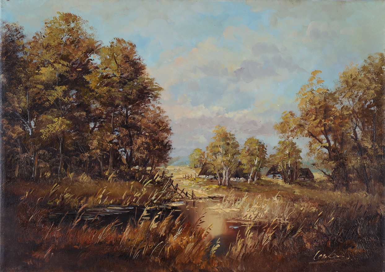 331188. SIGNIERT. Waldlandschaft mit moorigem Tümpel.