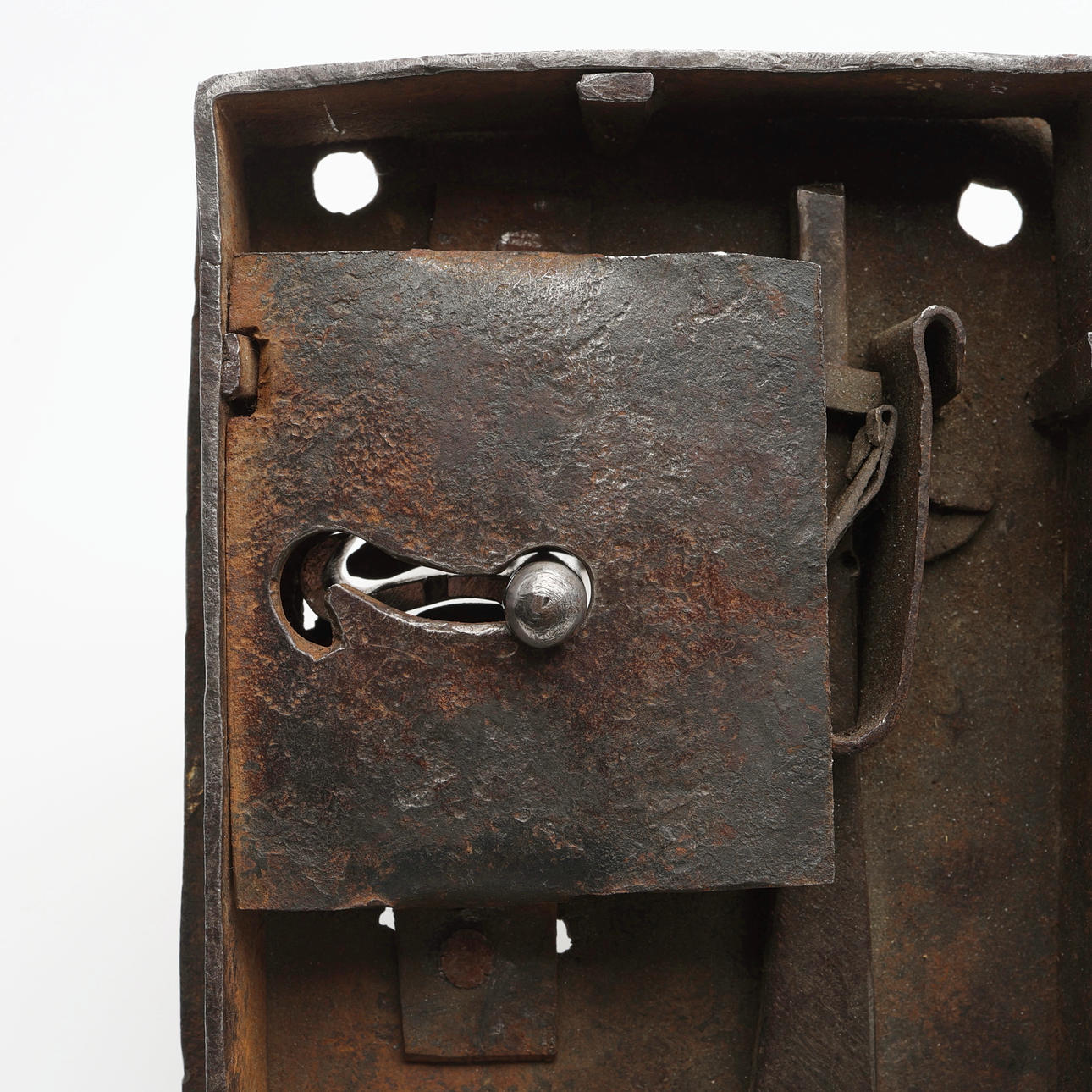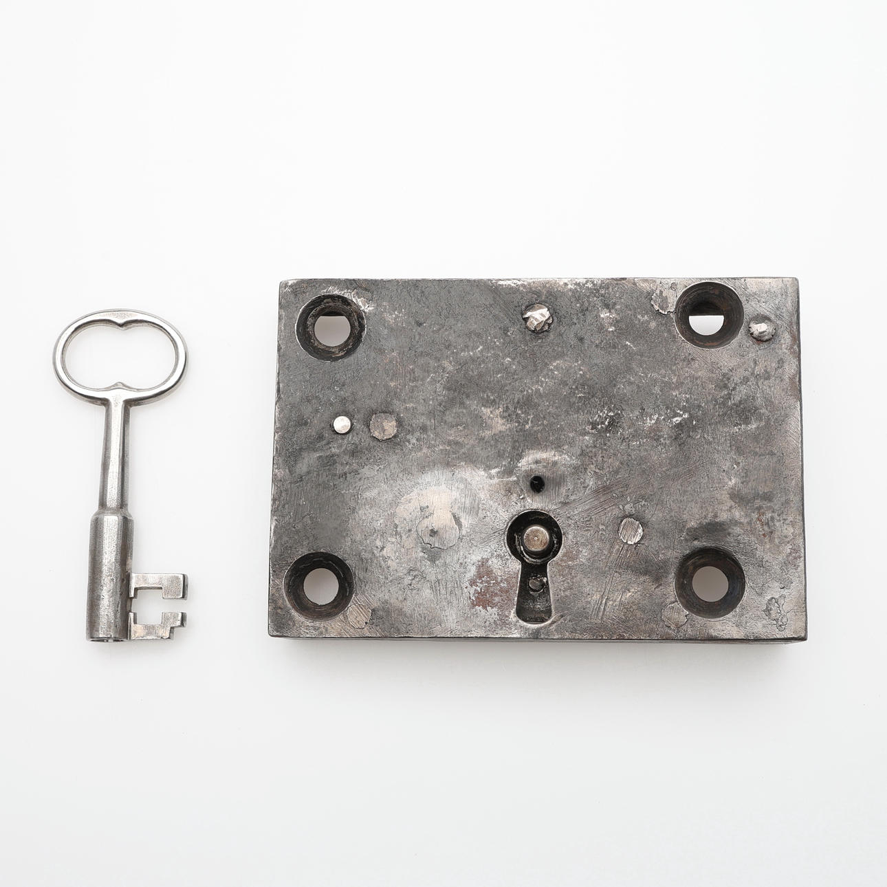 Abnutzungserscheinungen. Das Schloss aus dem 18. Jahrhundert mit einem später hergestellten Schlüssel.
