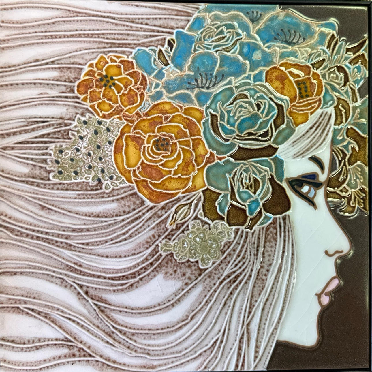 3313057. GERAHMTE HANDBEMALTE FLIESEN.