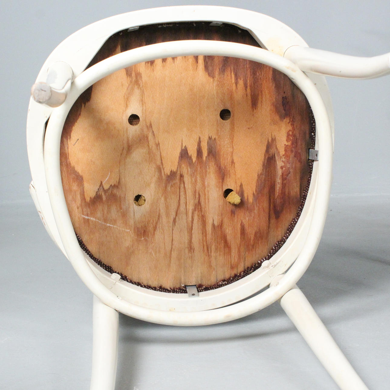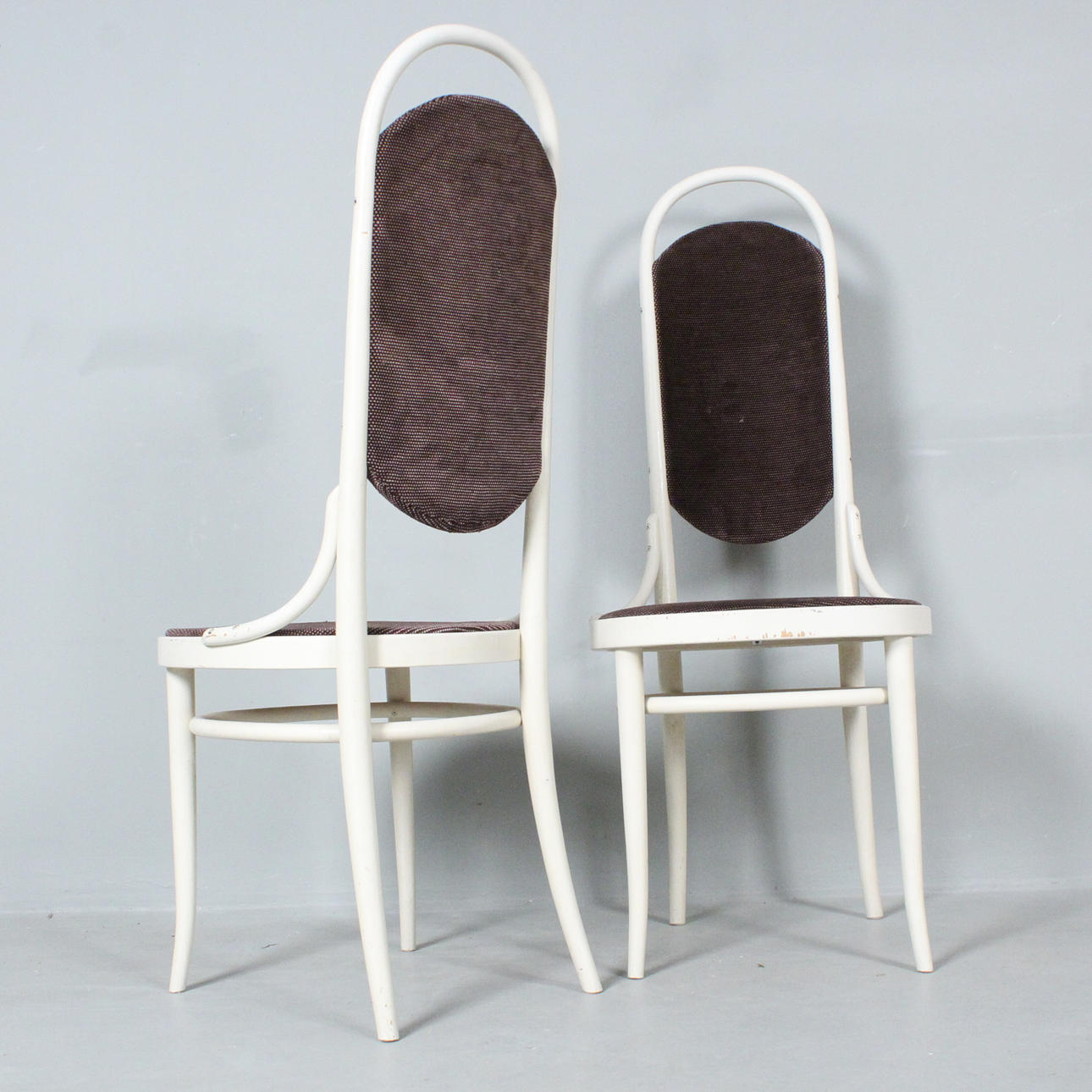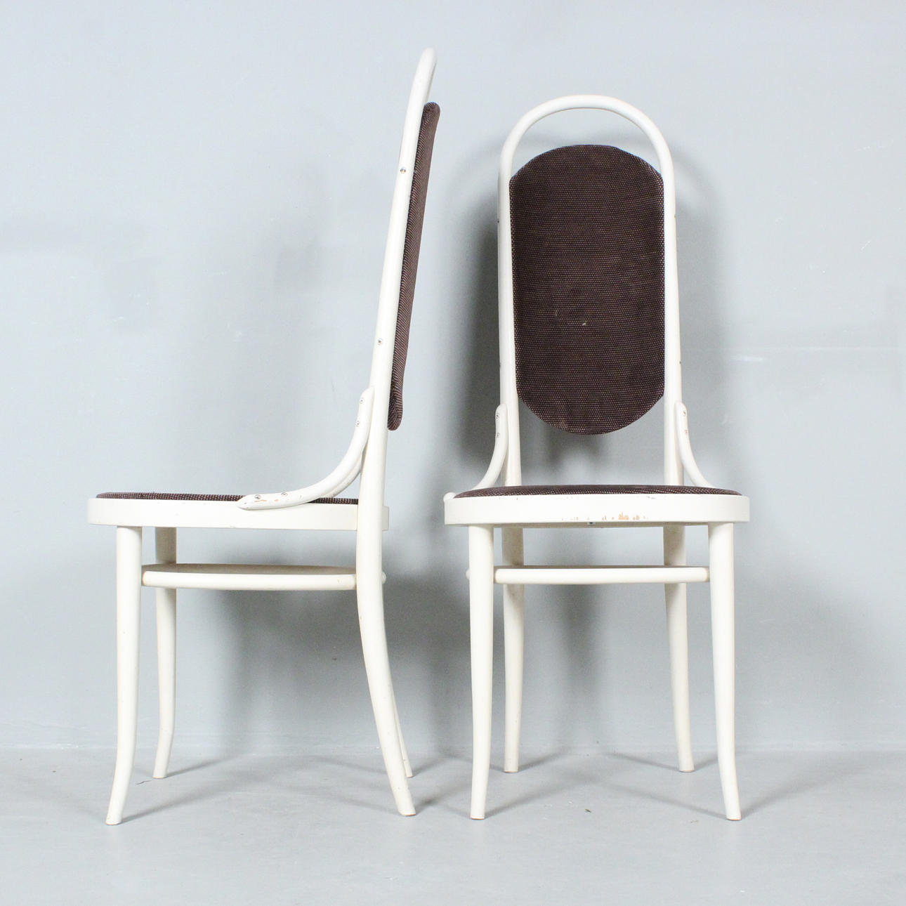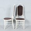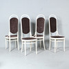 Thonet, vier Hochlehner / Kaffeehausstühle, Bugholz, weiß lackiert, unterseitig mit Herstelleretikett versehen,