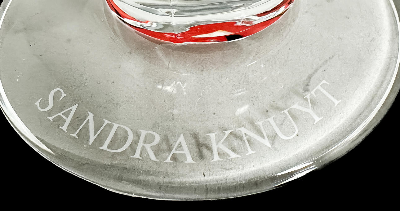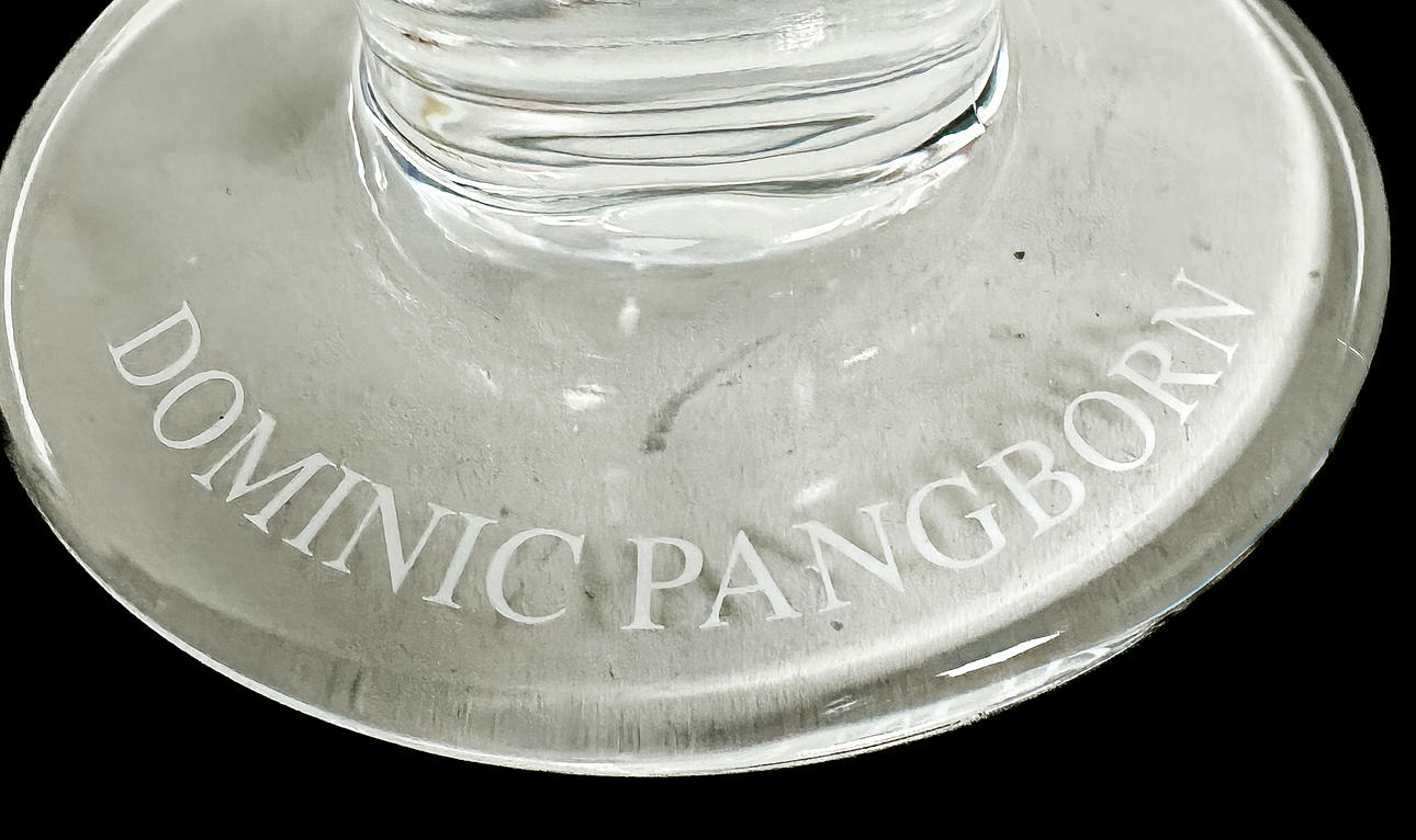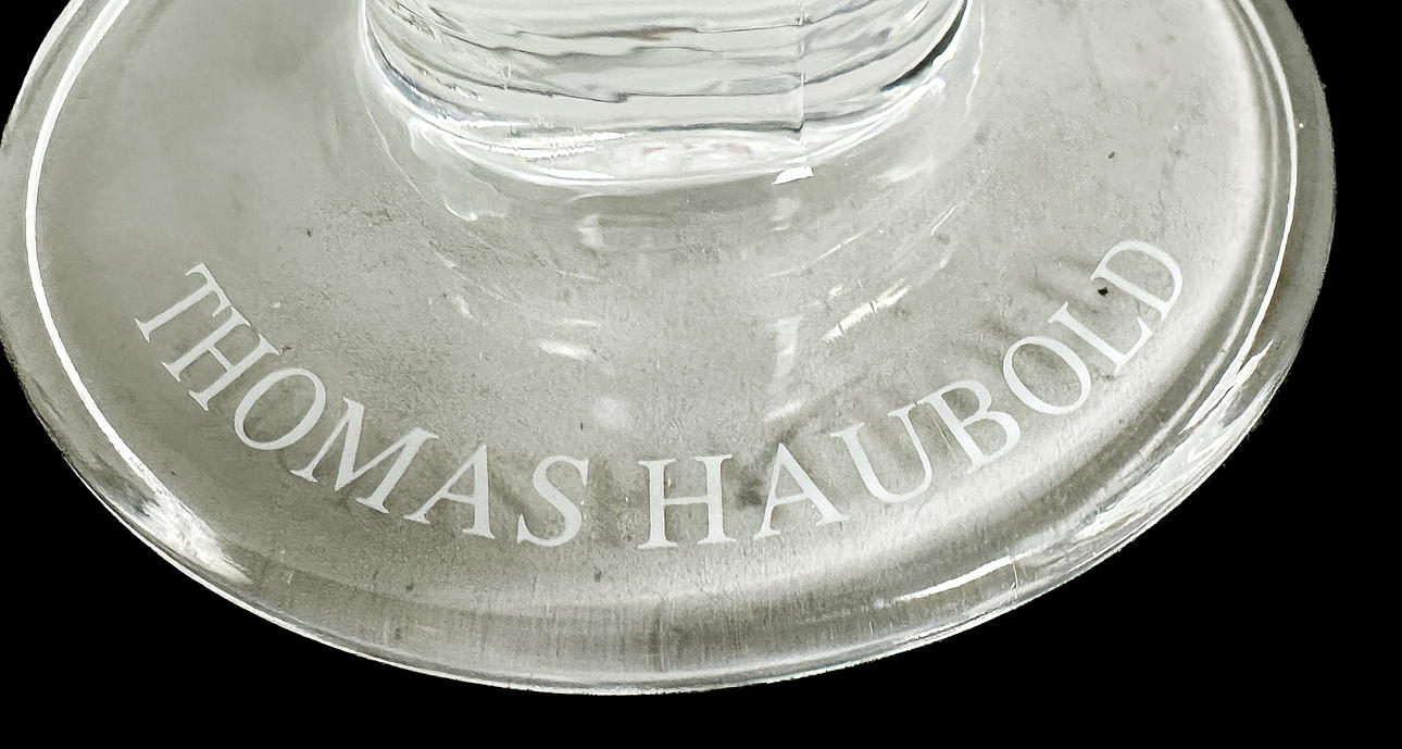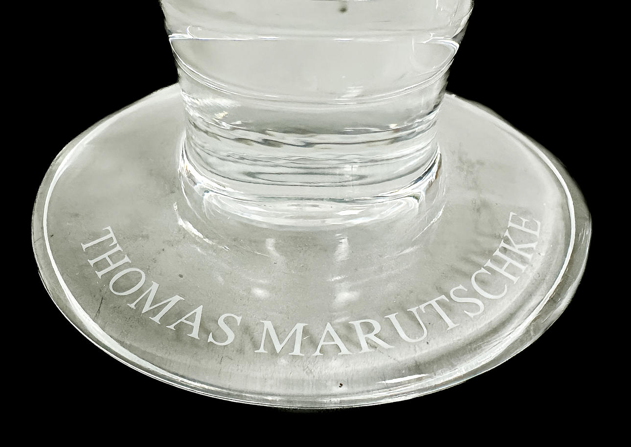 Ein Glas mit einer Kerbe.