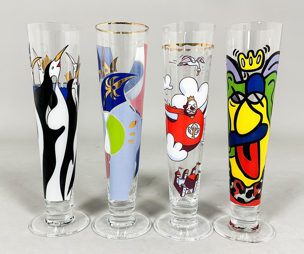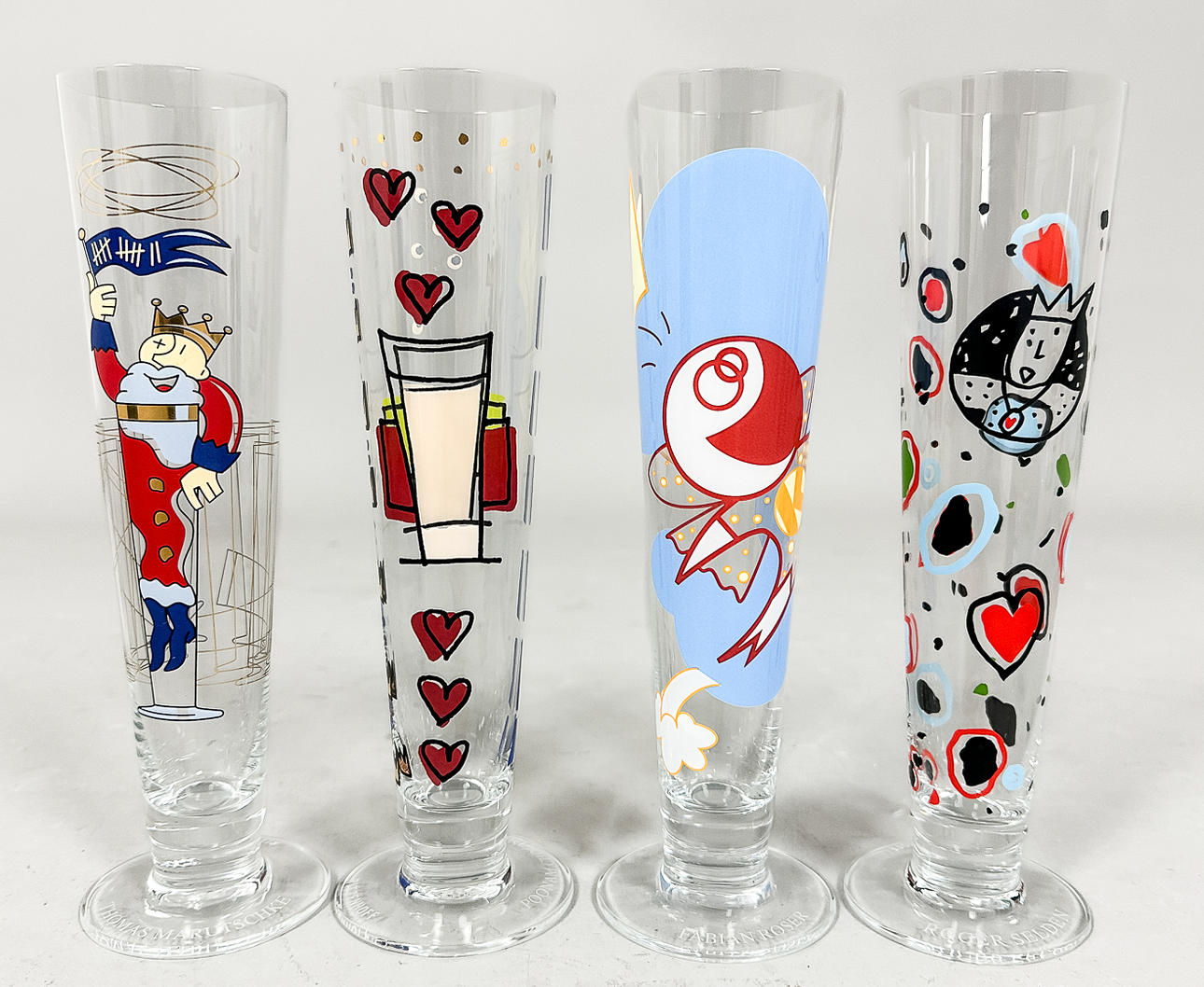 2 Gläser im Originalkarton, jedes Glas hat seinen eigenen Designer und ist gekennzeichnet.