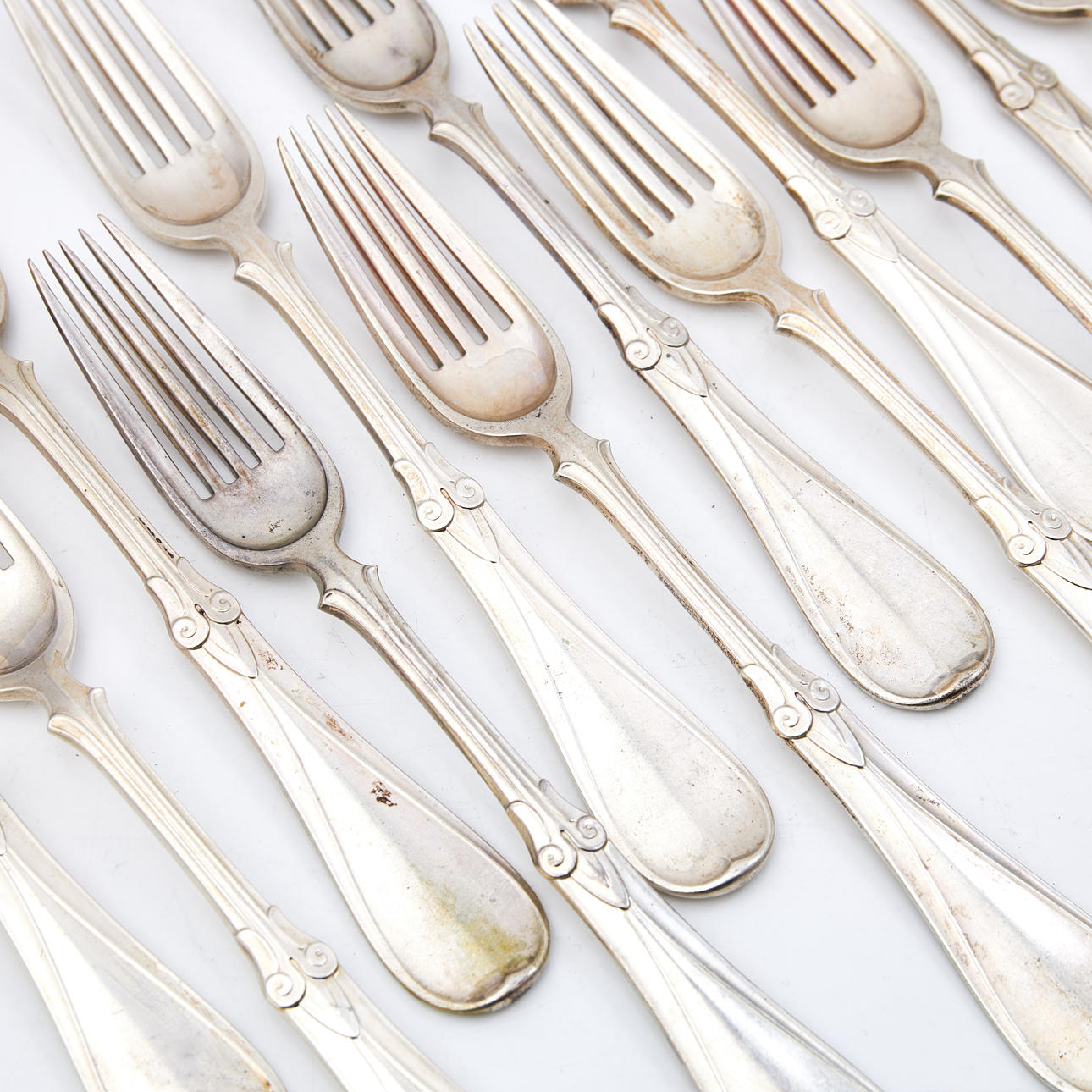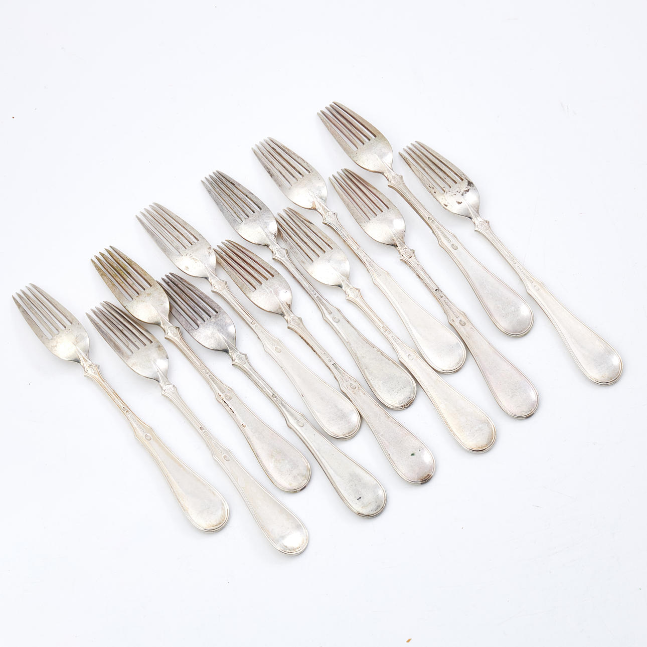 DESSERTGABELN, 12 Stück, Silber, W Christensen, Dänemark, Stempel.