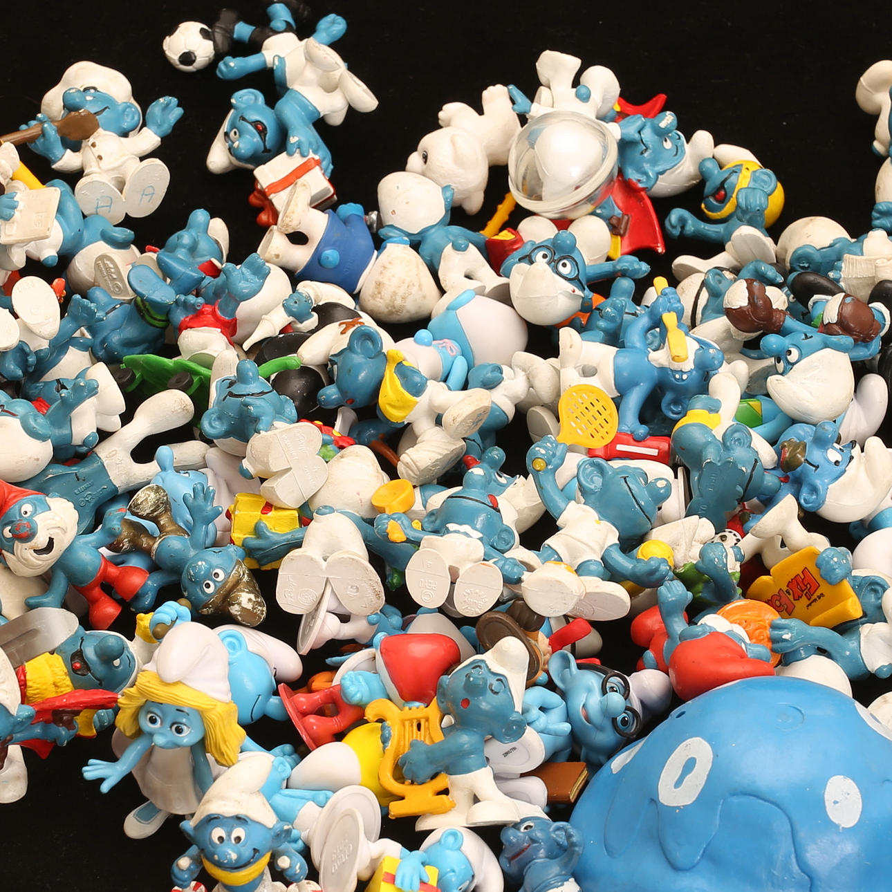 3318149. Ein Menge SCHMURFER. SCHLUMPFHÄUSER. Plastik, 20. Jahrhundert.