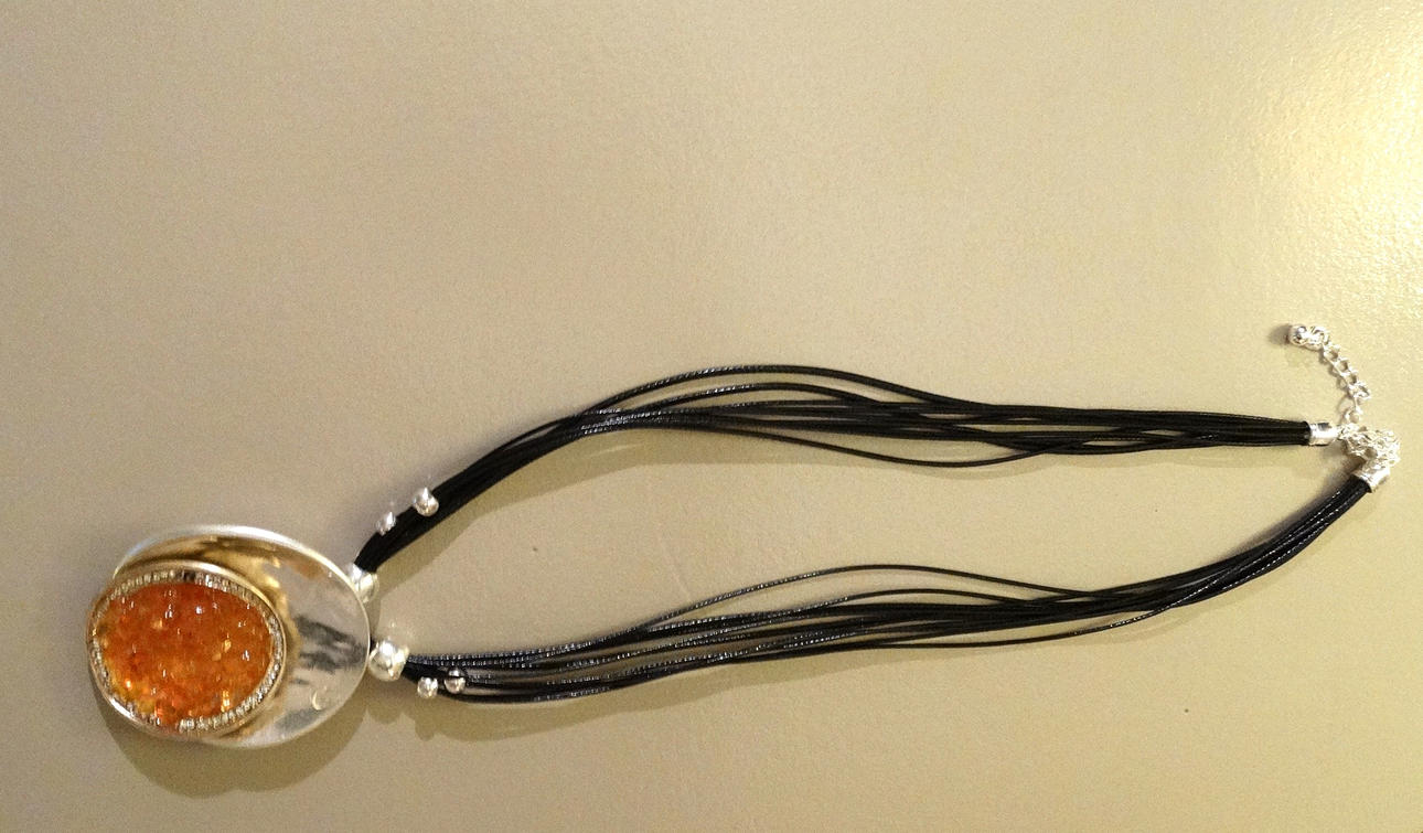 3319874. BERNSTEIN, Anhänger mit Stoffkette.