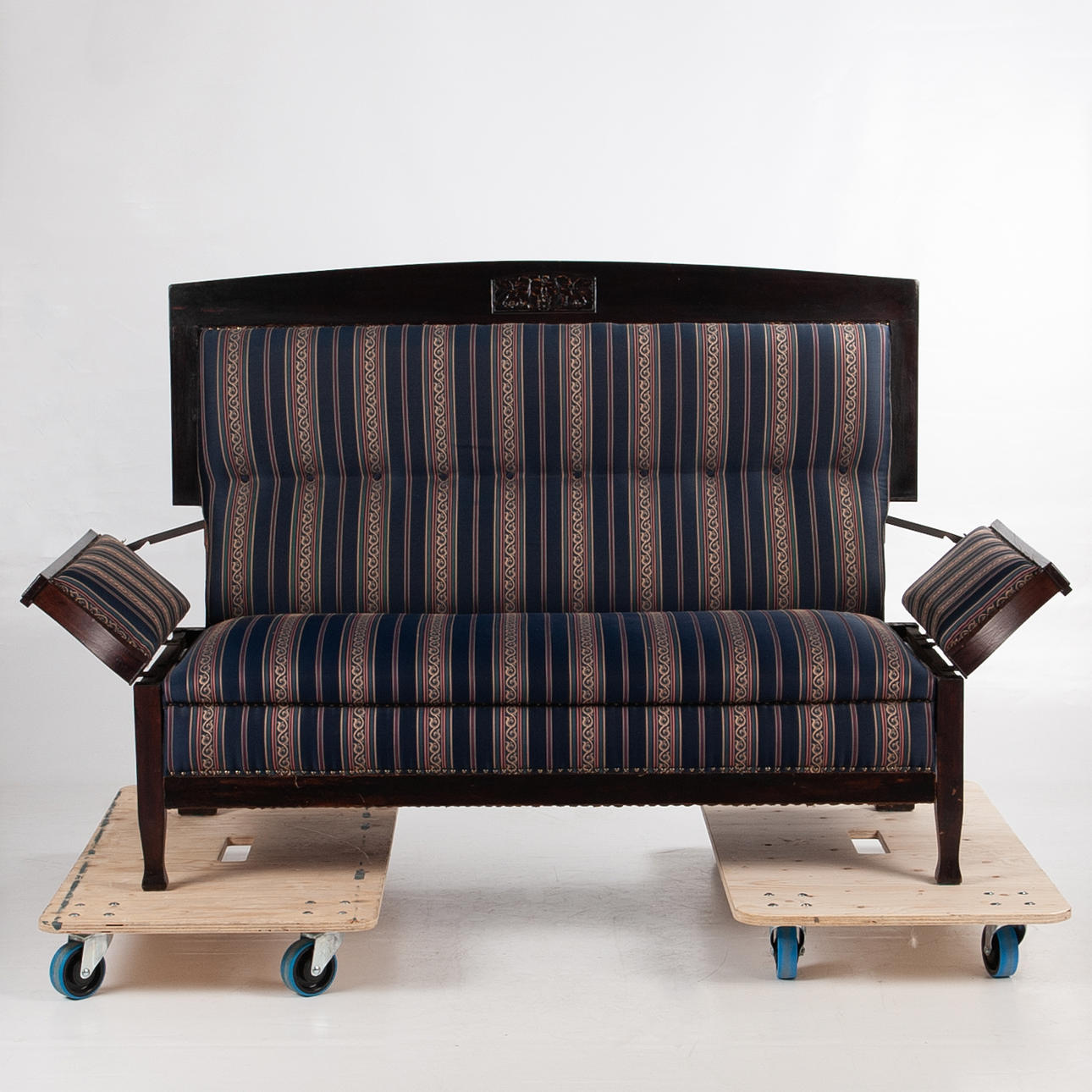Sitzhöhe 44 cm, Breite ca. 160 cm, Rückenhöhe ca. 108 cm.