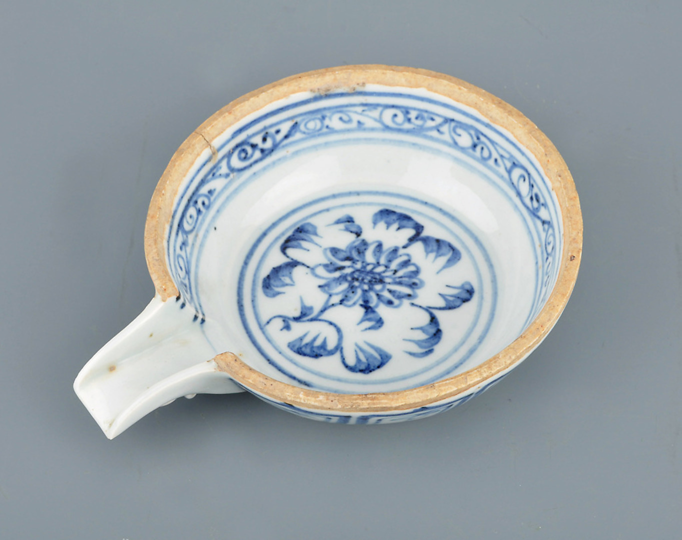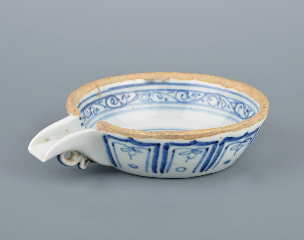 332331. GIESSSCHALE / TRINKSCHALE. Dekor Blau-weiß, Keramik.