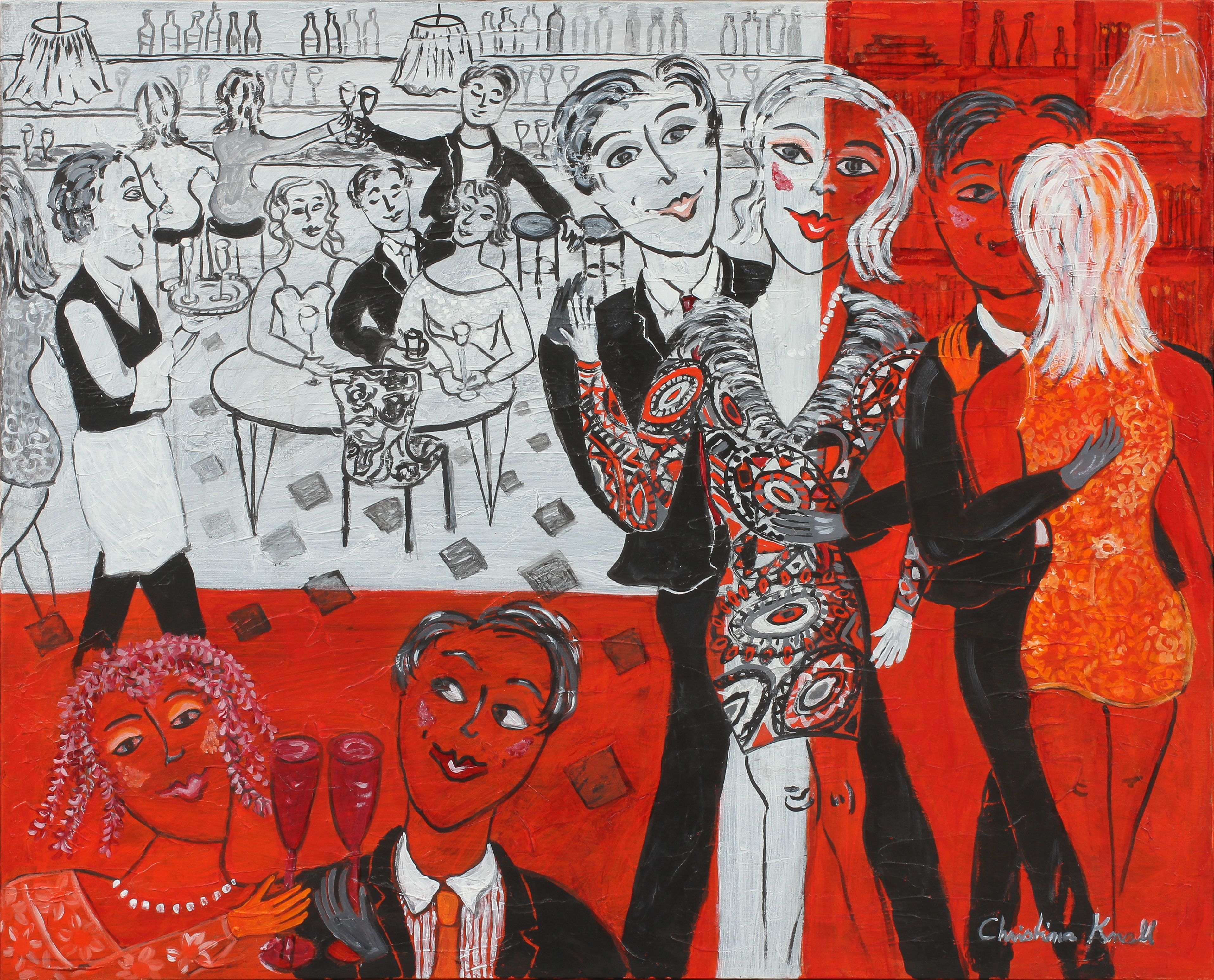 332929. CHRISTINA KNALL. Figurenkomposition, Mischtechnik, signiert.