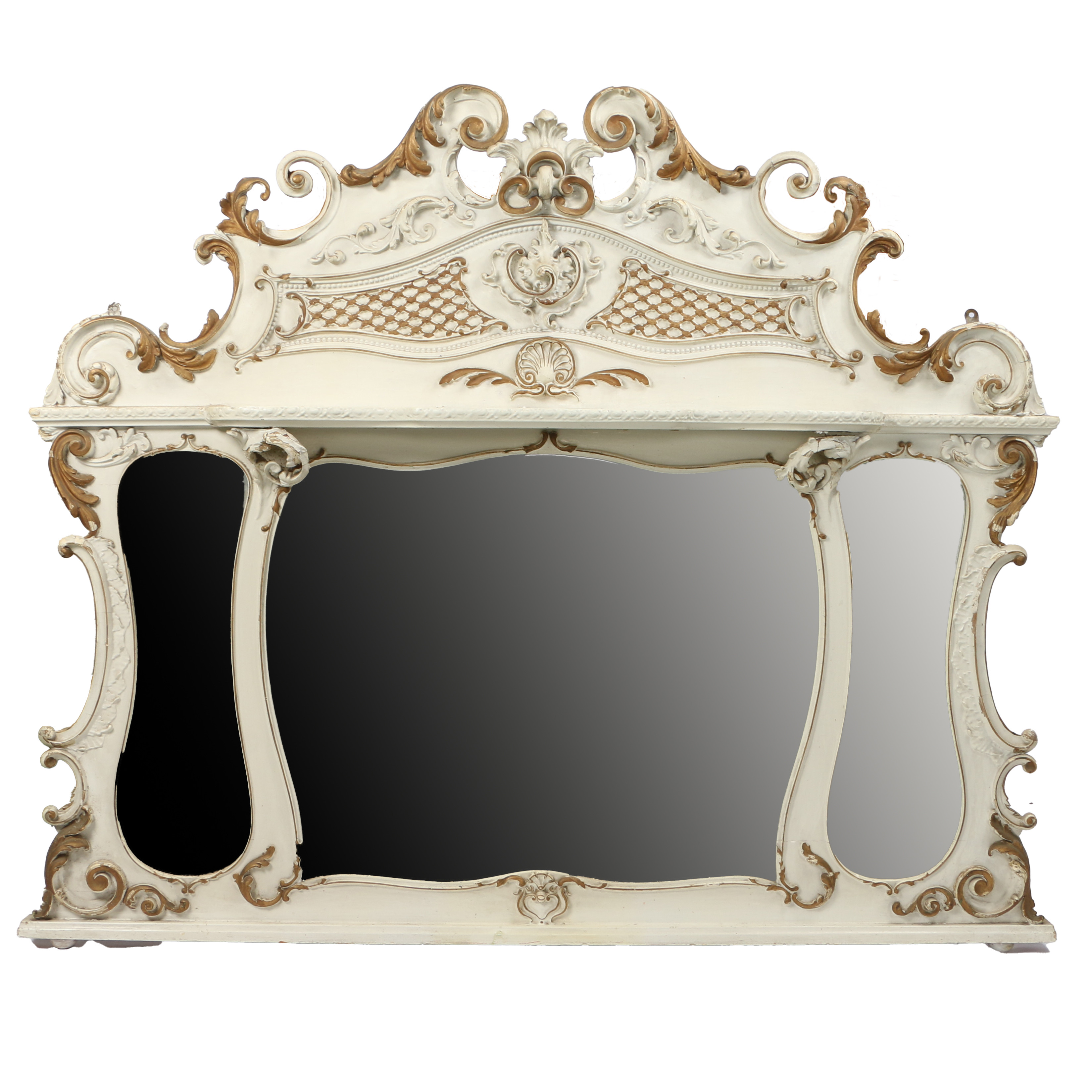 3332061. EIN VIKTORIANISCH BEMALTER ÜBERMANTELSPIEGEL.