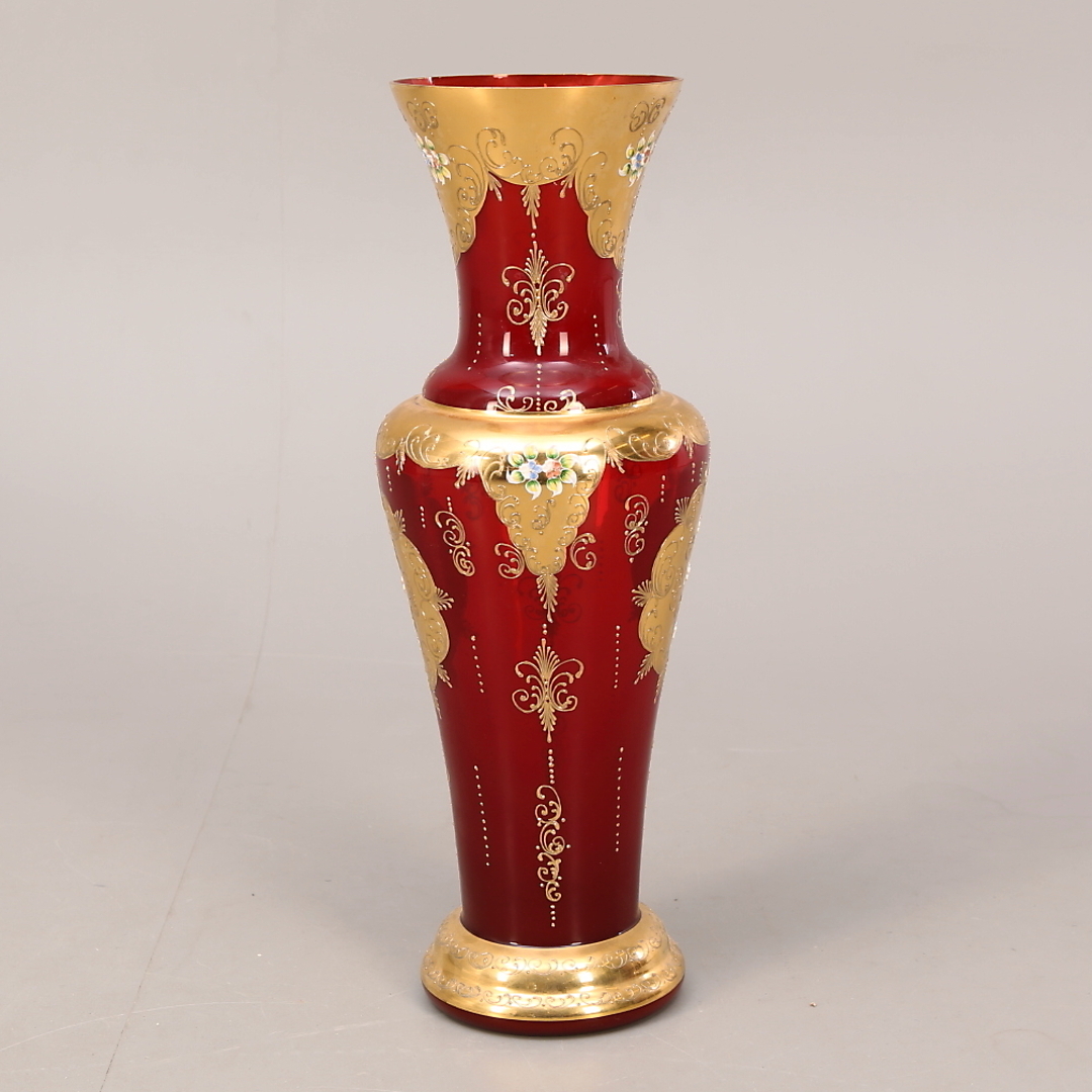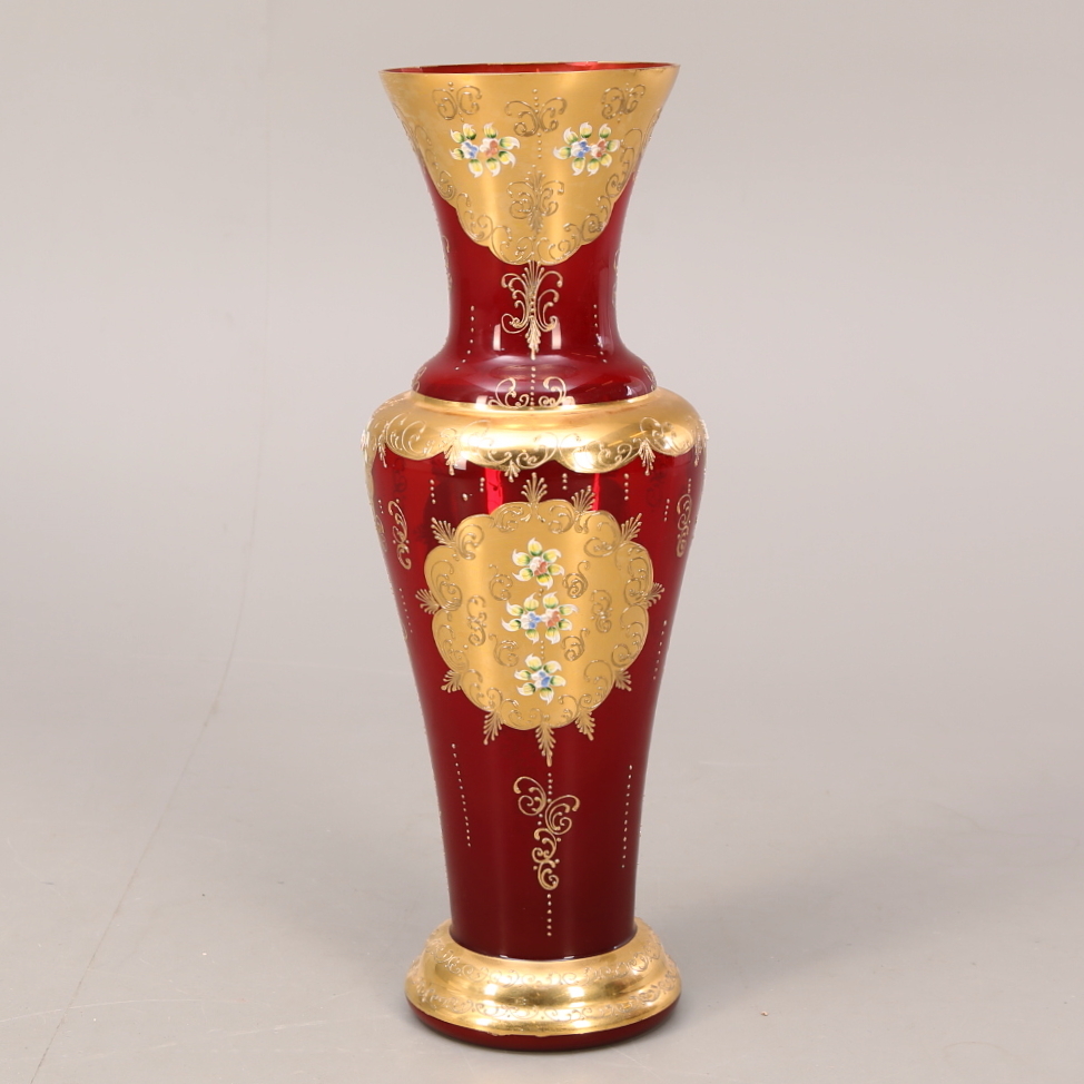 333264. BODENVASE, Glas, Emailmalerei, Golddekor.