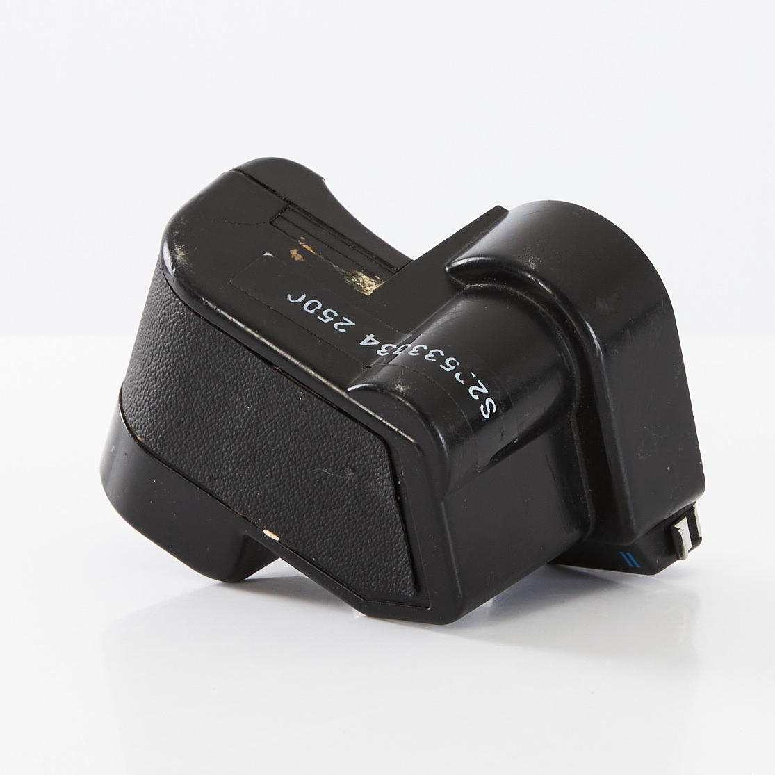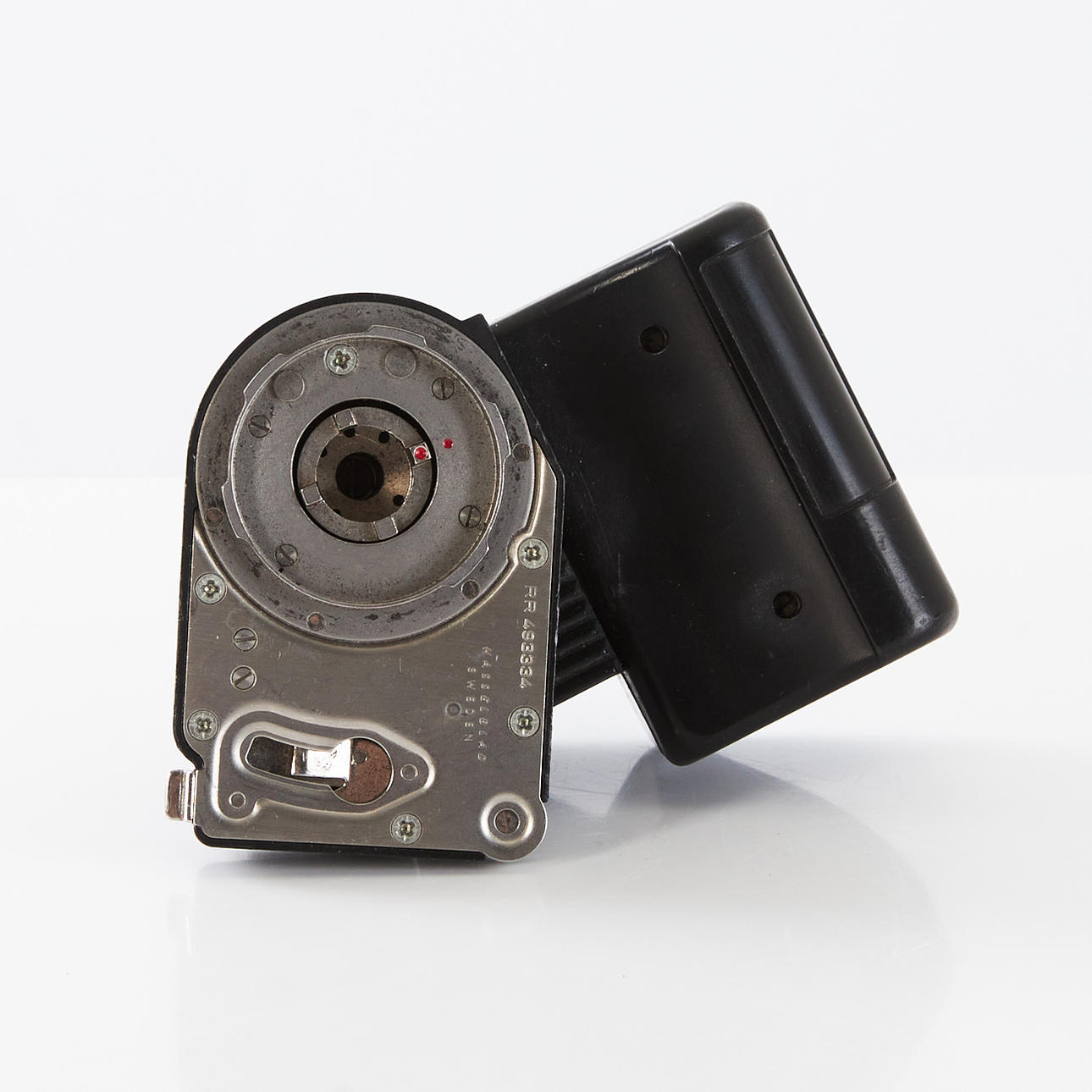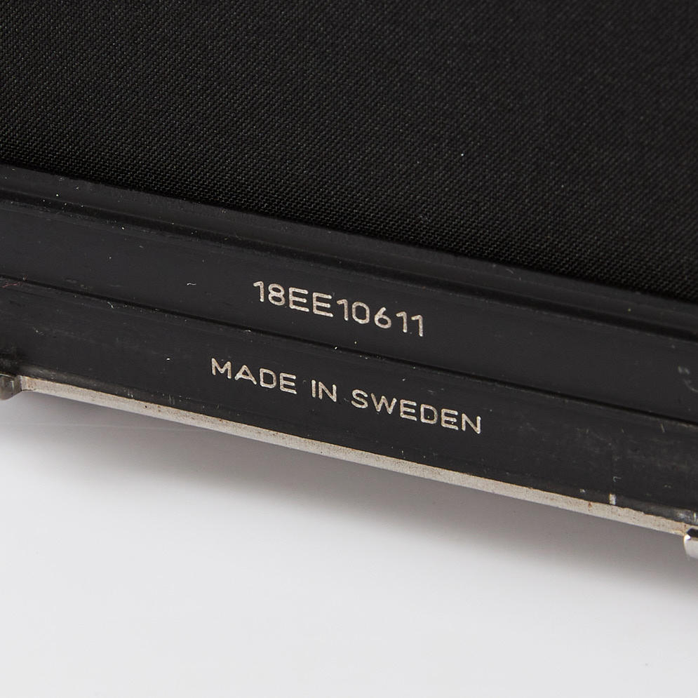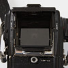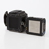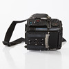HASSELBLAD 203FE (18EE10611), Schornsteinfeger, Kurbelmaschine (RR 493334), Rückseite E24 - 6x6 (38ER10045), Polaroid-Rückwand 100 (RU3711983), Lupe mit Fokussierhaube, -1 Dioptrie (42374) und Kameragurt.