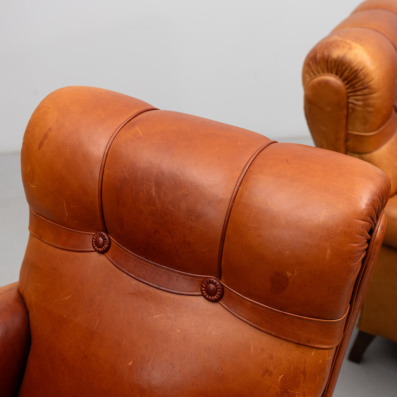 Ein Paar Ledersessel im englischen Stil.
