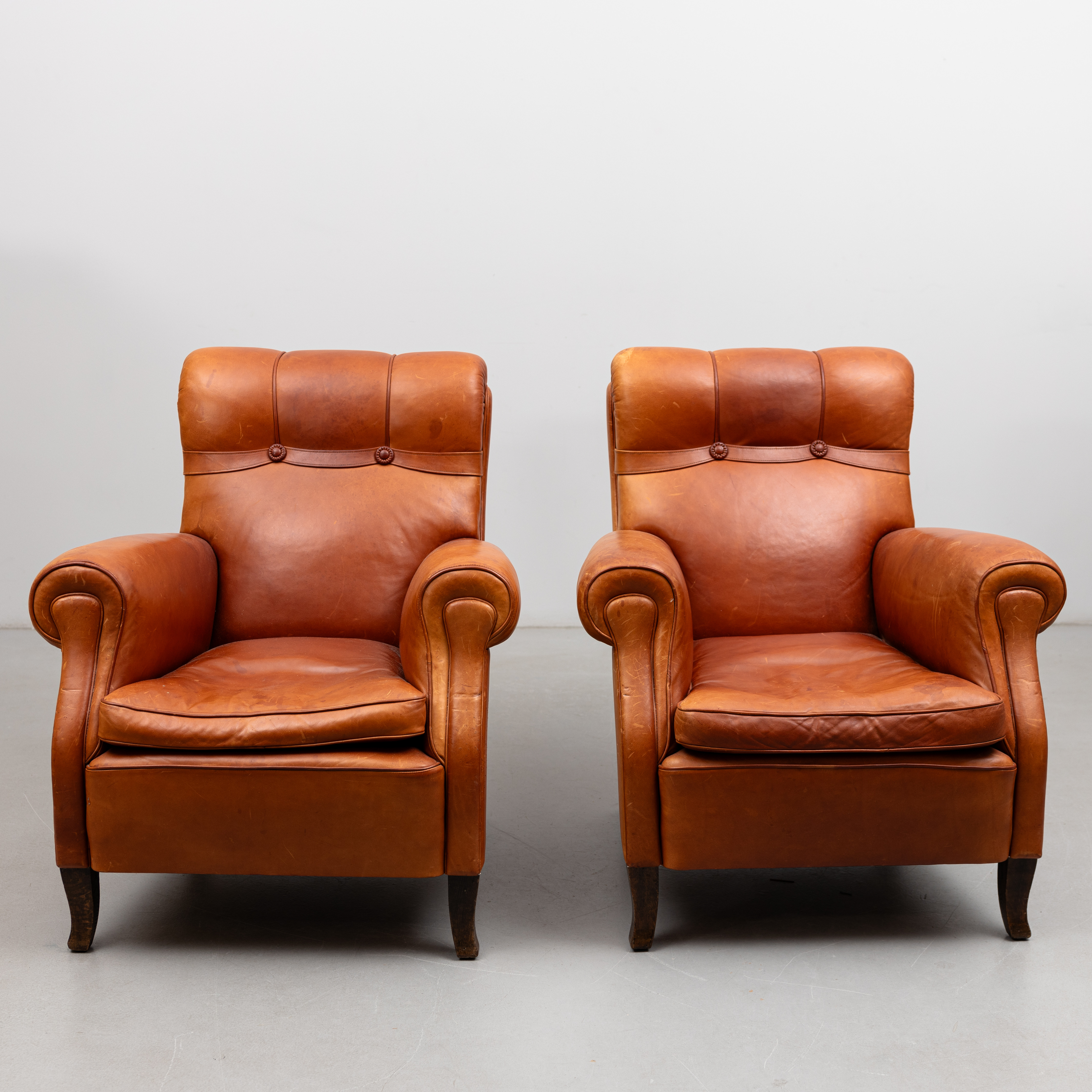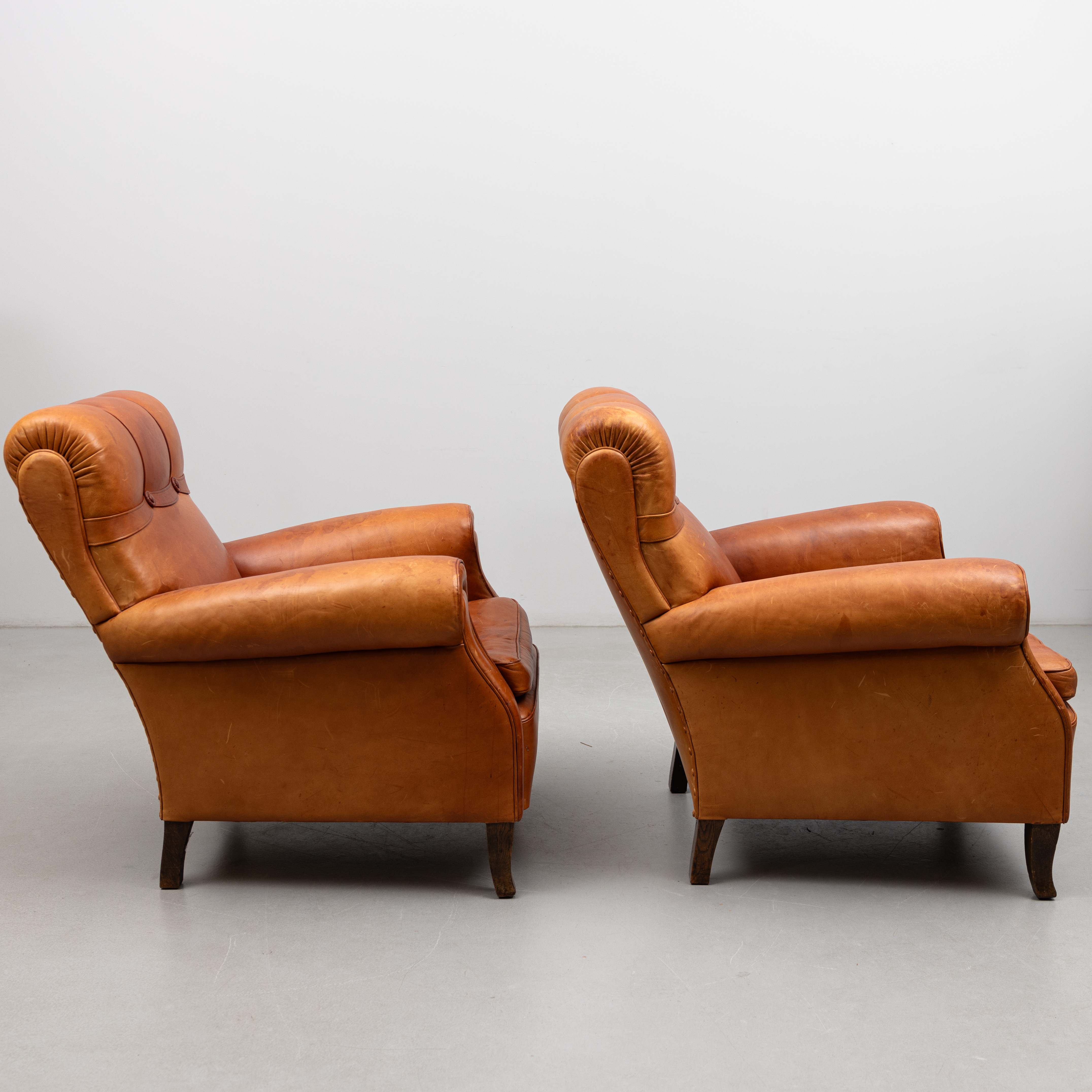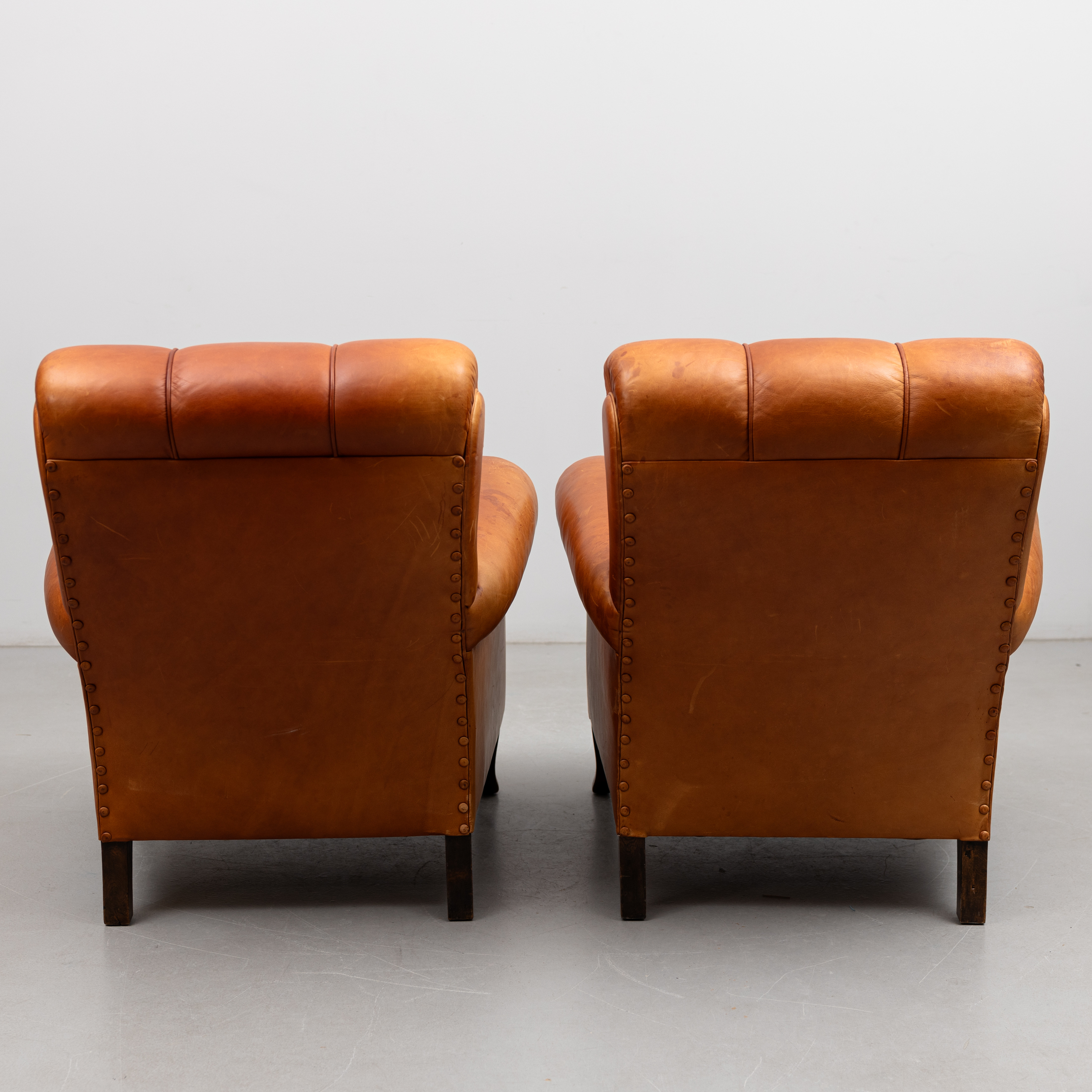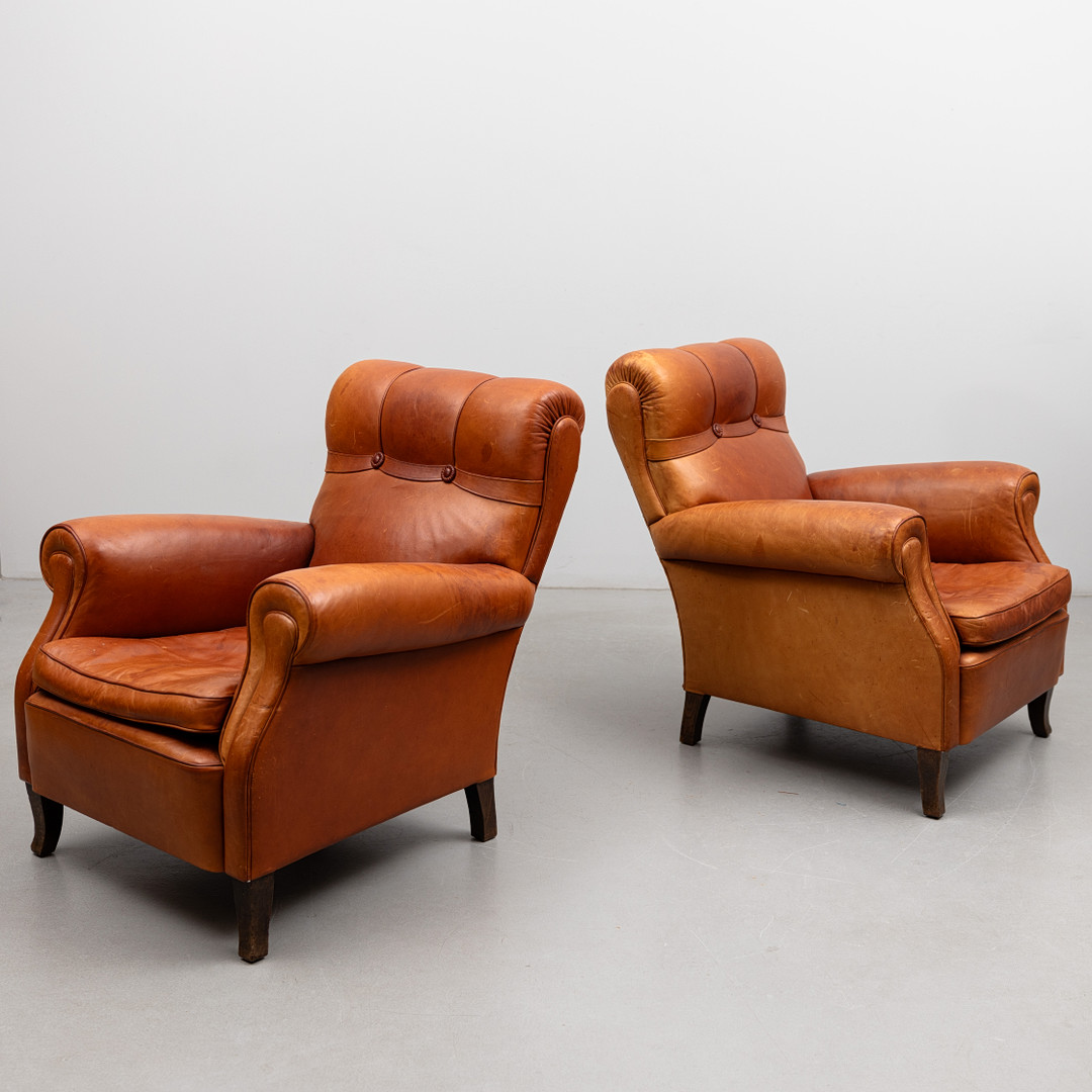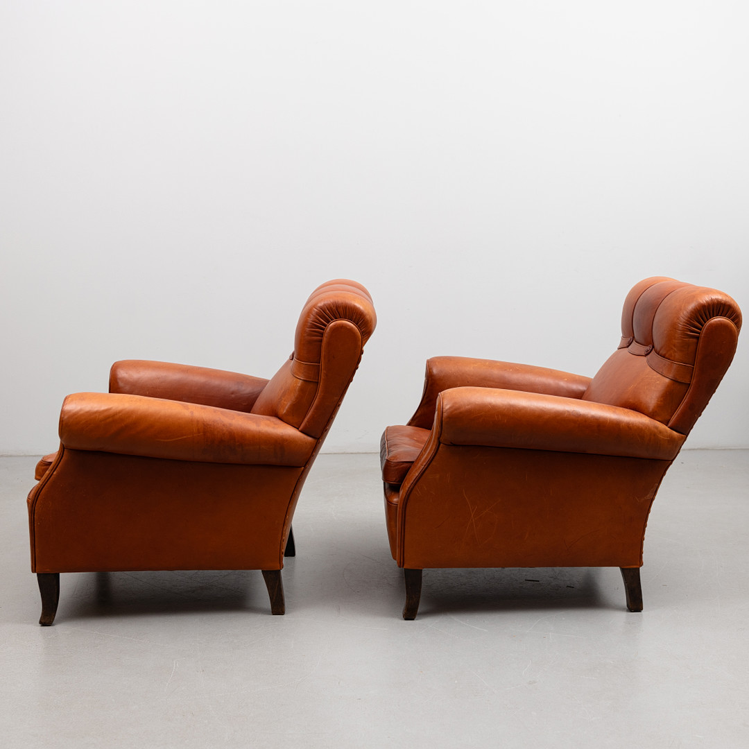 3335450. Ein Paar Ledersessel im englischen Stil.