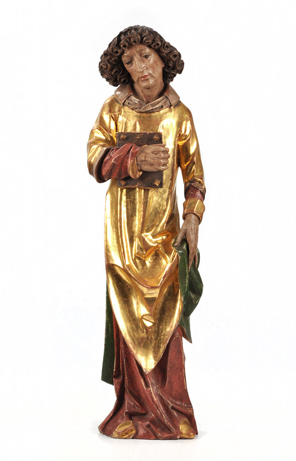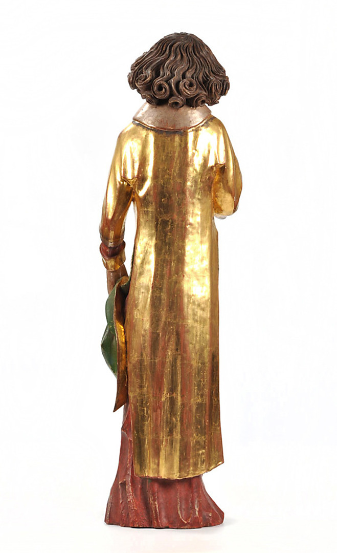 333653. HEILIGENFIGUR, POLYCHROM GEFASST. Heiliger Jakob mit Buch.