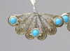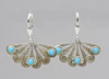 filigrane Fächerohrringe in Silber, auf Klappbrisur punziert mit 925, daran feingearbeitete Fächer diese mit türkisfarbigen Besatz, Länge 3 cm, Breite 2,8 cm, Gewicht 3,1 Gramm.