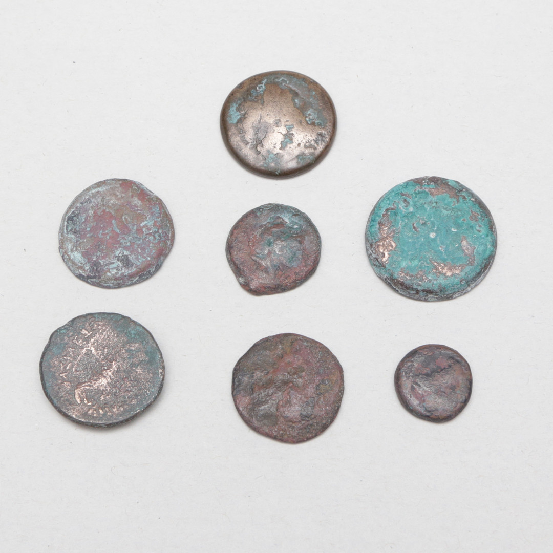 3337482. Ein Satz von 7 Kupfermünzen, römisch, ca. 2000 Jahre alt.