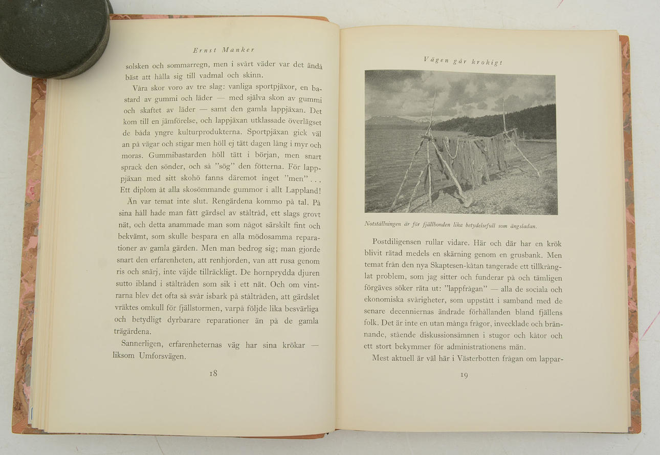Die Straße geht schief, Wandern in einer Ecke Lapplands von Ernst Manker, 1936 262 s, 156 Abbildungen und Landkarte. H 25 cm, B18