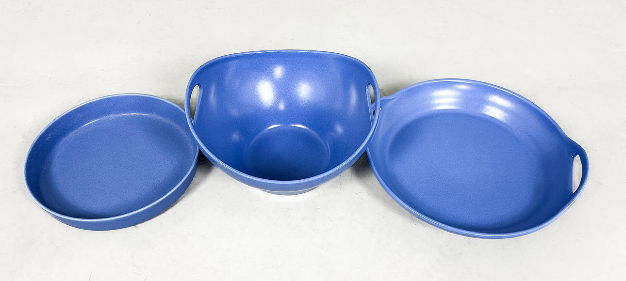 Schale, Durchmesser ca. 27, Höhe ca. 15 cm Runder Lauf, Durchmesser 24,5 cm Rundes Fass mit Aufhängern, Durchmesser ca. 31 cm, Höhe 5 cm.