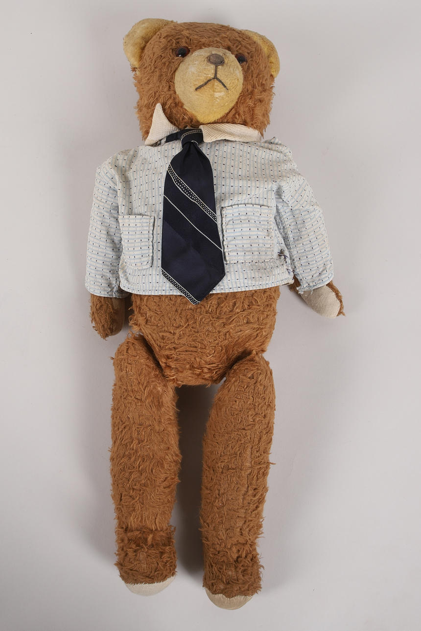Ein Teddybär mit Hemd und Krawatte, erste Hälfte des 20. Jahrhunderts.